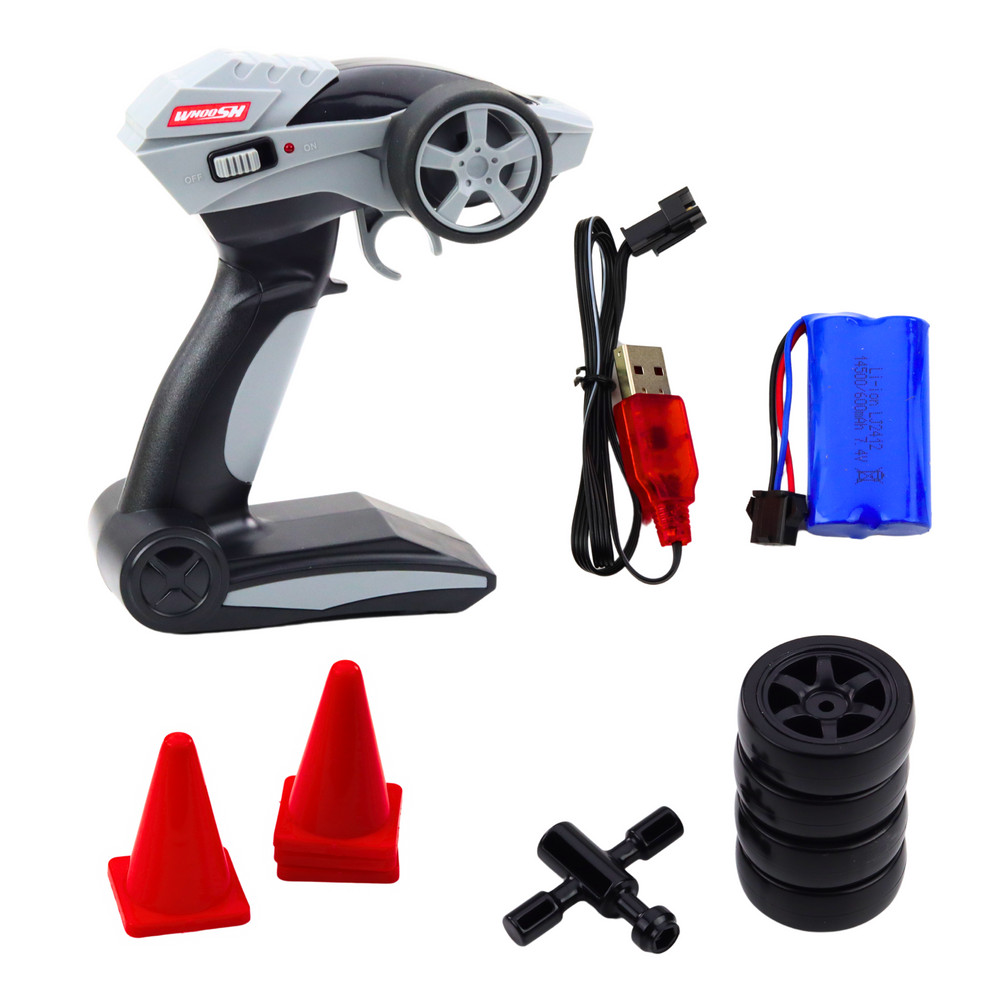 TÁVIRÁNYÍTÁSÚ VERSENYAUTÓ DRIFT RC 1:16 PIROS 30 KM/H LED GUMIK TÁVIRÁNYÍTÓVAL A sportos piros és fekete színvilágú, távirányítású RC versenyautó egy dinamikus játék, amely megjelenésével és teljesítményével egyaránt lenyűgöző. Az 1:16 méretarányban tervezett modell egy igazi rallyautóra hasonlít - agresszív karosszériavonallal, nagy spoilerrel és kifejező jelzésekkel. A négykerék-meghajtásnak és az erős 7,4 V-os akkumulátornak köszönhetően a jármű akár 30 km/h sebességet is elérhet, így ideális választás driftelésre és gyors vezetésre különböző felületeken. A modell LED-es világítórendszerrel - első és hátsó lámpákkal, valamint neon alvázvilágítással - van felszerelve, amelyek realizmust és stílust kölcsönöznek. A vezérlés 2,4 GHz-es távirányítóval történik, amely akár 25 méteres hatótávolságot és villámgyors reakcióidőt garantál. Egy további gumiabroncs-készlet, szervizkulcs és kúpok lehetővé teszik, hogy saját driftpályát hozzon létre, és teljes kontrollal gyakorolja a manővereket. Ez egy nagyszerű játék, amely fejleszti a motoros készségeket, a reflexeket és az autózás iránti szenvedélyt, ideális ajándék 6 éves kortól gyermekeknek. SPECIFIKÁCIÓ: Autó méretei: 31 x 12,5 x 8 cm Csomag méretei: 33,5 x 18 x 21 cm Méretarány: 1:16 Jármű tápellátása: 7,4 V 600 mAh akkumulátor (tartozék) Távirányító tápellátása: 3 x AA 1,5 V (nem tartozék) Irányítási tartomány: 20–25 m Játékidő: 25–30 perc Töltési idő: kb. 120 perc Funkciók: sodródás, 4 irányba vezetés, LED lámpák (elöl, hátul, neon), turbó, cserélhető gumiabroncsok Irányítás: 2,4 GHz-es távirányító Anyag: tartós műanyag A KÉSZLET TARTALMA: RC versenyautó 2,4 GHz-es távirányító 7,4 V-os akkumulátor USB töltőkábel Pótkerekek Gumiabroncs-csere kulcs Drift kúpok