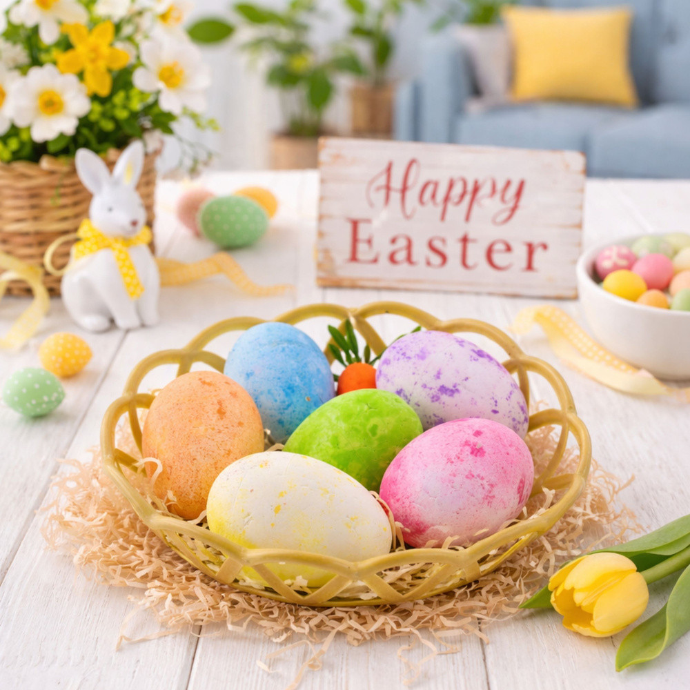 HÚSVÉTI DÍSZEK KOSÁRBAN TOJÁSOK RÉPA 7 DB A kosárban lévő húsvéti díszek bájos ünnepi díszek, amelyek tökéletesek otthonod, irodád vagy éttermed meleg és vidám húsvéti hangulatának megteremtéséhez. A készlet hat színes, finom pöttyökkel díszített tojást és egy hungarocell sárgarépát tartalmaz, mindegyiket egy áttört mintájú műanyag kosárban rendezve. A színek változatosságának és a gondos kidolgozásnak köszönhetően ez a dekoráció gyönyörűen illeszkedik bármilyen húsvéti dekorációba, egyedi tavaszi hangulatot kölcsönözve az enteriőrnek. A díszekkel ellátott kosár nagyszerű ajándékötlet szeretteidnek, vagy díszítőelem egy húsvéti kosárba. A tojások könnyű, mégis tartós hungarocellből készültek, míg a műanyag kosár stabil és könnyen tisztítható, így praktikus és esztétikus is. Klasszikus húsvéti motívumainak és pasztellszíneinek köszönhetően a készlet tökéletesen illeszkedik mind a hagyományos, mind a modern húsvéti dekorációba. Használható önállóan vagy egy nagyobb dekoráció részeként, virágokkal, ágakkal vagy más húsvéti díszekkel kombinálva. MŰSZAKI ADATOK: Dekorációs anyag: Hungarocell – könnyű, tartós és sérülésálló Kosár anyaga: Műanyag – stabil és könnyen tisztítható Tojás színei: Kék, zöld, narancssárga, lila, rózsaszín, sárga – pasztell árnyalatok finom pettyes hatással Motívumok: Tojás, sárgarépa – klasszikus húsvéti szimbólumok Kosár átmérője: 15 cm Használat: Asztaldísz, koszorúk, ünnepi díszek, polcdísz, húsvéti kosár elem, ajándék A KÉSZLET TARTALMA: 6 db pasztell színű hungarocell tojás pettyes hatással 1 db hungarocell sárgarépa Műanyag kosár a dekoráció alapjául