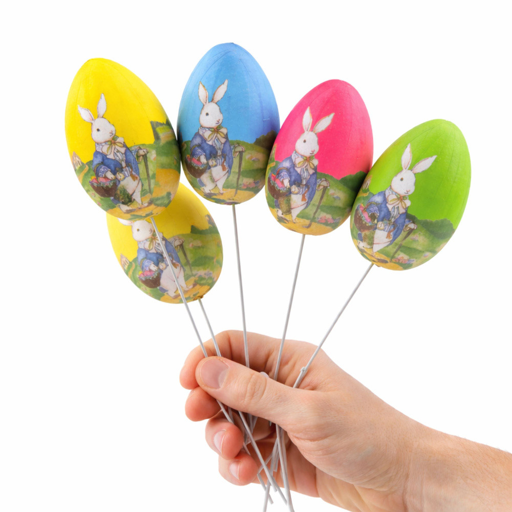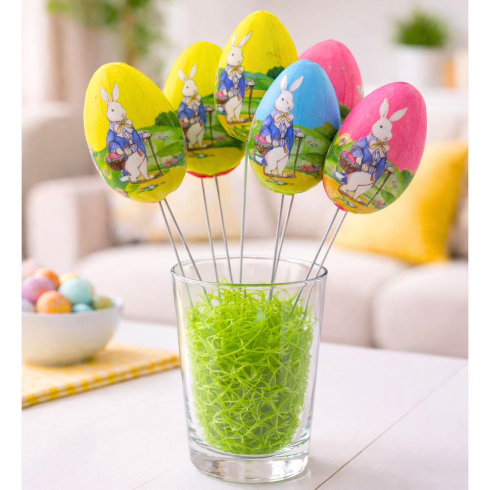 Húsvéti tojások drótszedő nyuszi kosárdíszítéssel 6db