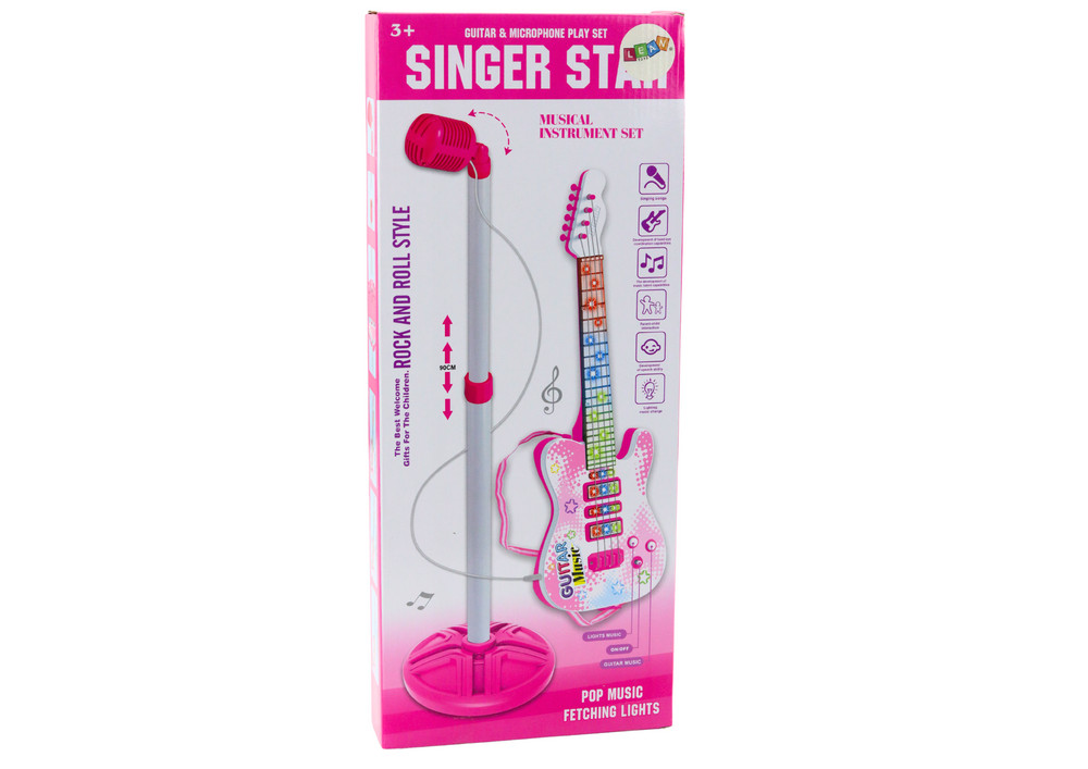 Elektromos Gitárállvány Mikrofonnal Elemmel Működtethető Rózsaszín Készlet Ez egy látványos játék kisgyermekeknek, amely elrepíti őket a zene varázslatos világába. Ez a realisztikus kinézetű gitár, rózsaszínben, egyszerűen elbűvölő a gyerekek számára. 3 elemmel működik, szabad játékot tesz lehetővé, bekapcsolva pedig világít, ami fokozza a varázsát és serkenti a képzeletet. A játék számos különböző dallammal és móddal rendelkezik, amelyek változatos zenei és vokális élményeket tesznek lehetővé. A kisgyermekek élvezhetik a gitározást, énekelhetnek a mikrofonnal, vagy mindkét funkciót használhatják egyszerre, ami még izgalmasabbá teszi a mókát. A készlet tartalmaz egy fehér és rózsaszín állványt is, amely a mikrofonhoz csatlakozik, így a gyermek igazi sztárnak érezheti magát a színpadon. Fogantyúval is rendelkezik, amely megkönnyíti a hordozást. Fejleszti a kreativitást, a zenei képességeket és a kéz-szem koordinációt, így a gyerekek igazi sztároknak érezhetik magukat a zenei színpadon. Ez egy tökéletes ajándék minden kis művésznek, aki a show-bizniszben való karrierről álmodik! A készlet elemei: - gitár - mikrofon - állvány Gitár méretei: 40 cm x 14 cm x 5 cm Állvány méretei: 90 cm x 20 cm x 7 cm Csomag méretei: 53 cm x 25 cm x 6 cm CE tanúsítvánnyal rendelkezik, és megfelel az EN71 szabványnak. A játék 3 év feletti gyermekek számára készült.