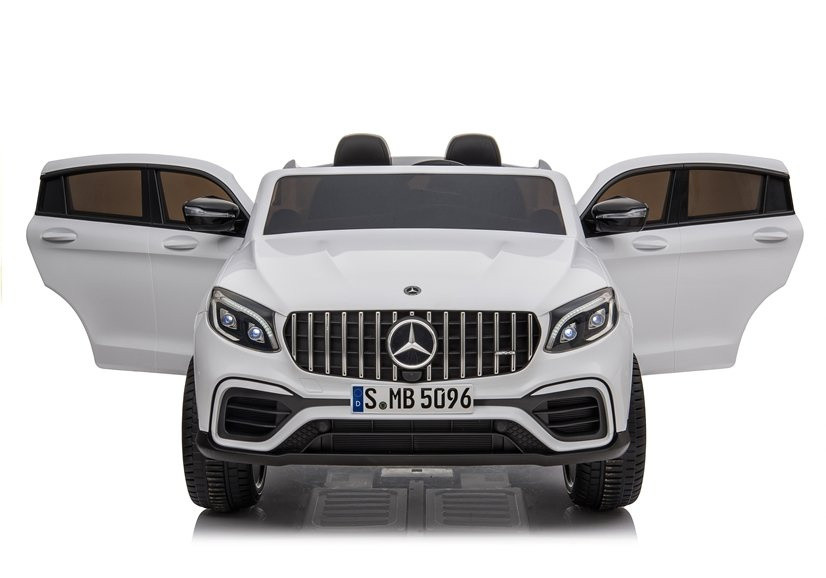 Mercedes GLC 63S Kétüléses Akkumulátoros Kisautó. A Mercedes logóval ellátott autók a legismertebb járművek közé tartoznak. Ez a háromágú csillaggal ellátott modell számos technológiai újítással büszkélkedhet, amelyek a szemet gyönyörködtető dizájnnal együtt az exkluzivitással párosulnak. Ha gyermekét már élete első éveitől lenyűgözik a séták során elhaladó járművek, örvendeztesse meg azzal, hogy saját Mercedest ad neki. Az öröm garantált! Ez a gyermek kisautó számos előnnyel büszkélkedhet – négy erős, egyenként 45 W-os motor, speciális műanyagból készült EVA kerekek és egy 2,4 G-os távirányító, amellyel a szülők irányíthatják a kis raliversenyzőt és utasát! Ezek az elemek, egy erős akkumulátorral kombinálva, nemcsak hihetetlenül jól megépítetté teszik a járművet, hanem fantasztikus, biztonságos szórakozást is garantálnak. Ez a gyermekautó automata sebességváltóval rendelkezik, amely 3-5 km/h sebességet tesz lehetővé. A jármű belső tere ugyanolyan jól néz ki, mint a külseje. A kis vezető és utas rendelkezésére áll egy puha, öko-bőr kétszemélyes ülés biztonsági övvel, valamint egy olyan kormánykerék, amelynek gombjai dallamokat aktiválnak, így a fiatal sofőrök igazi raliversenyzőknek érezhetik magukat. Az akkumulátorral működő jármű tanúsított, kiváló minőségű anyagokból készült, így CE tanúsítvánnyal rendelkezik. A Mercedes 3 év feletti gyermekek számára készült, de a mellékelt 2,4 G-os távirányítóval történő vezérlés lehetővé teszi, hogy még a kisebb gyermekek is jól érezzék magukat. Az összeszerelés egyszerű, körülbelül 20-30 percet vesz igénybe. A jármű méretei: 138 cm x 86 cm x 64 cm. Csomagolási méretek: 140 cm x 77 cm x 41,5 cm.