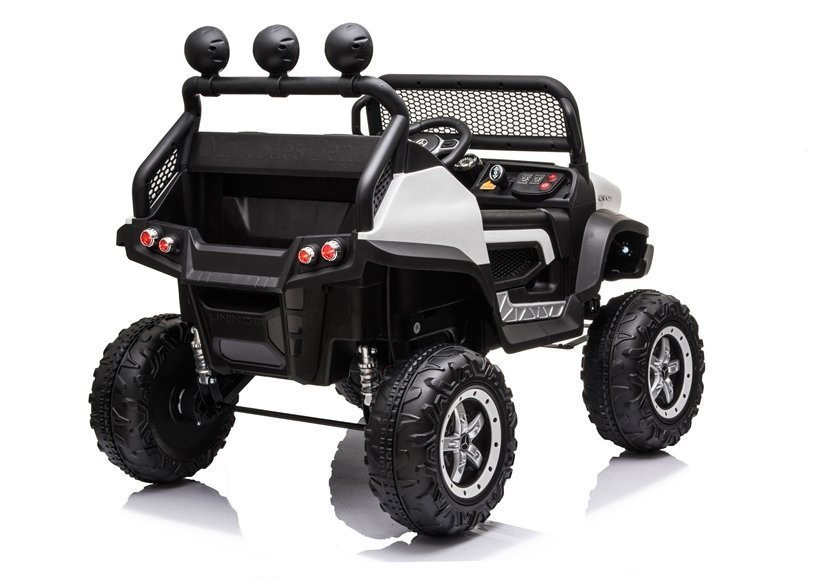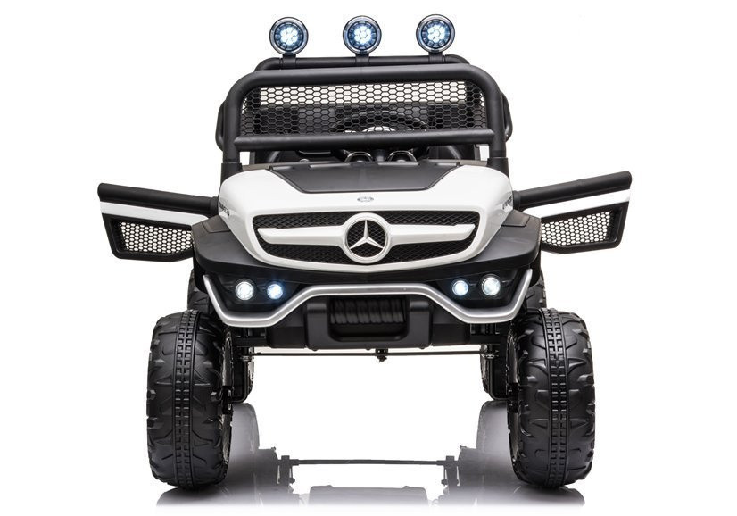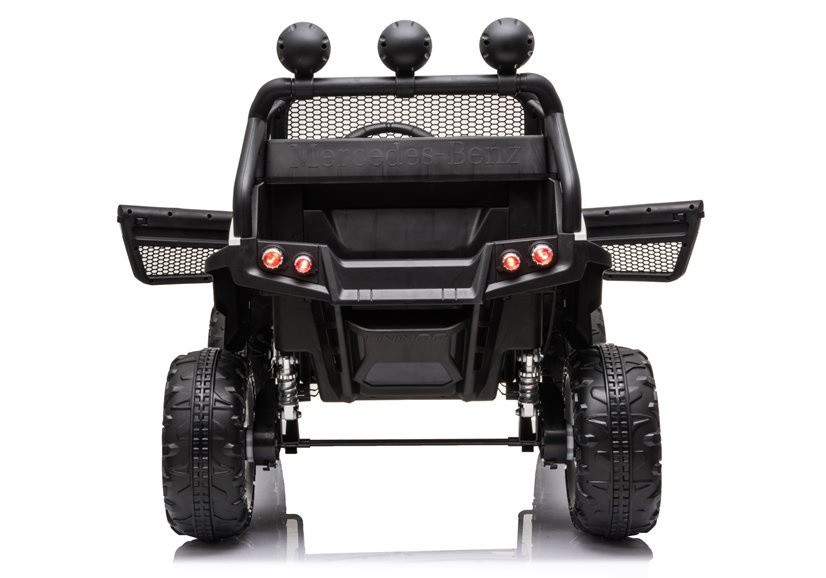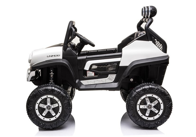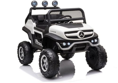 Mercedes Unimog S 4x45W akkumulátoros kisautó - Gyermeke már kiskorától kezdve az autóvezetésről álmodik? Ezt lehetővé teheti, ha ajándékoz neki egy terepjáró akkumulátoros kisautót. Hagyja, hogy gyermeke megtapasztalja a felelősséget és a függetlenséget, ami a nem hozzászokott felszerelés használatából fakad. Ne feledje, a masszív felépítésű felszerelés elengedhetetlen – ezért válasszon magabiztosan négykerék-meghajtású Mercedes Unimog-ot. A Mercedes Unimog-ot a legapróbb részletekre is odafigyelve tervezték, ami pozitívan befolyásolja a fiatal raliversenyző élményét. A tartós és robusztus konstrukció, valamint a kiváló minőségű anyagok évekig tartó kiváló szórakozást és sérülésállóságot biztosítanak. A modell vonzerejét fokozzák a nyitható ajtók és a lengéscsillapítók, amelyekre szerelték, így az egyenetlen és göröngyös terepen való vezetés sokkal élvezetesebb és kalandosabb. Ez a gyermek akkumulátoros kisautó minden bizonnyal megfelel a fiatal autórajongók elvárásainak. Miért? Realisztikus kialakítása, 4x45 W-os motorja, 12V7Ah-s akkumulátora, valamint első és hátsó lámpái említésre méltóak. Az, hogy gyermeked akkumulátoros autóval közlekedik, nem jelenti azt, hogy teljes szabadsággal vezetheti – a távirányítóval mindig szabályozhatod a sebességét. Ez a modell 3 éves kortól ajánlott, de a fiatalabb sofőrök is használhatják szülői felügyelet mellett. A terepjáró CE tanúsítvánnyal rendelkezik, ami biztonságos használatot biztosít. Dobd fel a családi kirándulásokat egy fiatal autórajongóval a volán mögött. Súly csomagolással: 28,5 kg. Méretek: 110 cm x 68 cm x 41 cm.
