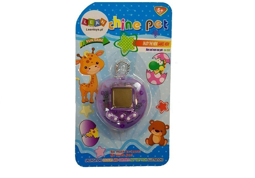 Elektronikus Állatos Tamagotchi Lila, rövid lánccal. Valószínűleg minden szülő ismeri a kultikus tamagotchi játékot. Ez az elektronikus szív kis kijelzővel a 90-es évek óta hódítja meg minden gyermek szívét! Ez az interaktív játék jó tréning lesz, mielőtt saját háziállatot tartanánk, mivel megtanítja gyermekünket a szisztematikus gondoskodásra és a felelősségvállalásra. Milyen is egy elektronikus háziállattal játszani? A játék egy tojás animációjával kezdődik, amelyből lassan kikel a kedvencünk. A gondozó feladata a kiválasztott állat etetése, szórakoztatása, fürdetése és gyógyítása, valamint az utána való takarítás, hogy boldogan növekedhessen - akárcsak a való életben. A szisztematikus gondoskodás lehetőséget ad a kisgyermekednek, hogy figyelje virtuális kedvence növekedését. Az egyensúly fontos ebben a kapcsolatban - a háziállat túlzott védelme és elhanyagolása kellemetlen következményekkel járhat, ami a betegség. Az elektronikus szív színes bliszterbe van csomagolva, és aktiválásához két 1,5 V-os elem szükséges, amelyek a készletben találhatók. A kis méretek és a mellékelt nyakpánt miatt ez a játék 3 év feletti gyermekek számára készült. Tamagotchi méretei: 5 cm x 5,5 cm x 1,5 cm Csomag mérete: 18 cm x 10,5 cm x 2 cm
