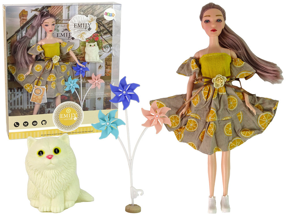 Emily baba szélmalom macskával gyerekeknek Bemutatkozik az Emily baba szélmalmokkal és egy imádnivaló macska baráttal. A termék lehetővé teszi a gyermek számára, hogy fejlessze fantáziáját a mellékelt termékekkel való játék révén. Lehetővé teszi számukra, hogy megtanulják, hogyan gondoskodjanak kreatívan egy háziállatról, és két barát történetét is megalkossák a szabadban. A készlet serkenti a kreativitást, fejleszti a szociális készségeket, és végtelen szórakozást és élvezetet nyújt. Ez az egyedi készlet nagyszerű ajándék lehet a kis babarajongók számára. A cica figurának köszönhetően, amely elkíséri Emilyt közös kalandjaikon, a játék még szórakoztatóbbá és realisztikusabbá, valamint hihetetlenül izgalmassá válik. A termék tervezésénél nagy gondot fordítottak a részletek minőségére és pontosságára. Emily figura légies, gyönyörű, narancssárga mintás ruhát, virágos övet és fehér cipőt visel, amelyek hozzájárulnak sportos stílusához, karjait és lábait, valamint fejét is mozgatja. A babának gyönyörű kék ​​szemei ​​és hosszú haja van. A macska cincogó hangokat ad ki, ha megnyomják, és a bundája fehér. A játék tartalma: - Emily baba - három szélmalom - macska A baba méretei: hosszúság: 30cm szélesség: 8cm A macska méretei: hosszúság: 5cm szélesség: 4cm A csomag méretei: hosszúság: 33cm szélesség: 28cm Vastagság: 6cm Ez a játék három év feletti gyermekek számára alkalmas, CE tanúsítvánnyal és ENF1 kompatibilis.