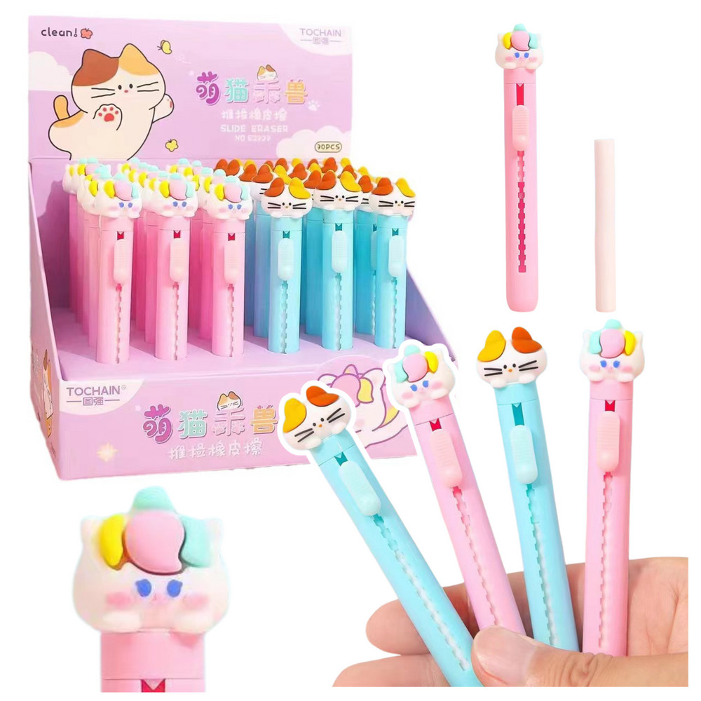 Kihúzható radír toll macskafigurával, kék rózsaszín