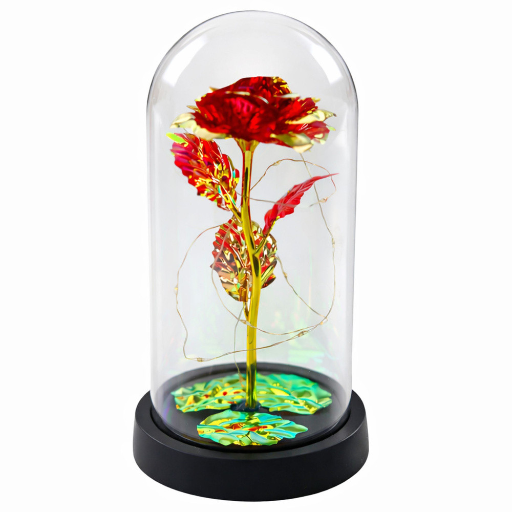 Örök Kristály Rózsa Kupolában LED Világítással Piros 21x11cm