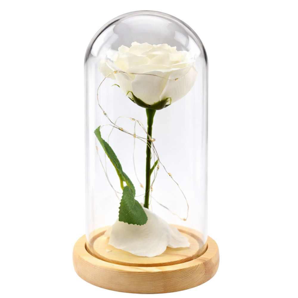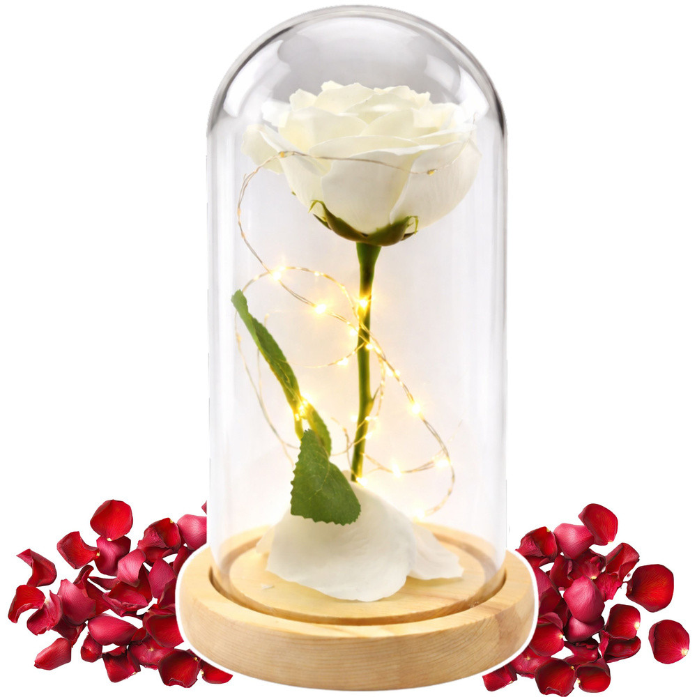 Örök Rózsa Üvegkupolában LED Világítás Fehér 21x11cm