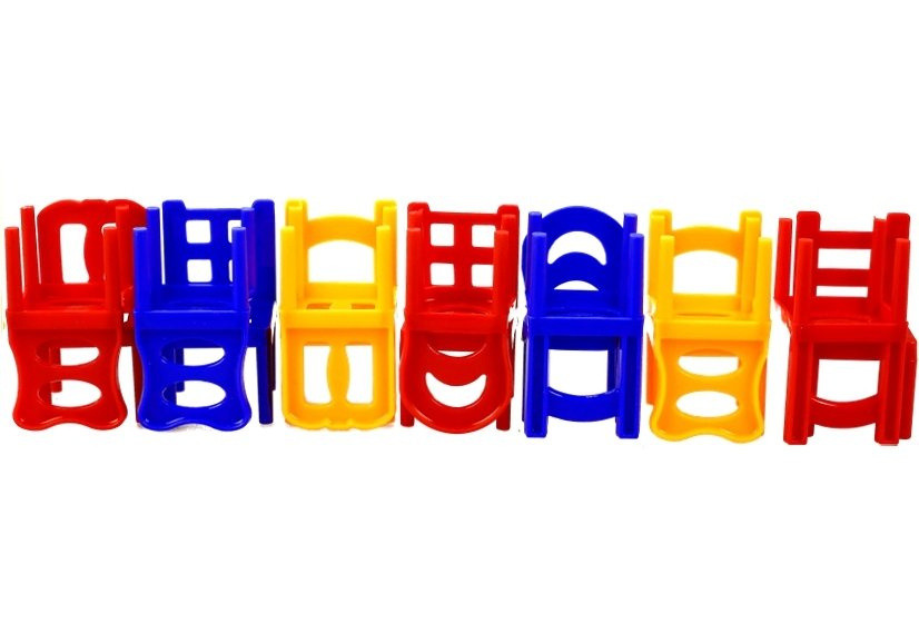 Leeső Székek Kirakó Színes Torony Játék Egy szórakoztató Leeső Székek játék az egész családnak. A tökéletes játék fiúknak és lányoknak. A játék nyugalomra és türelemre tanít. A játék szabályai nagyon egyszerűek: Minden játékos egyesével egymásra rak székeket, hogy az egymásra rakott torony ne essen szét. Rakd egymásra a színes székeket, és építsd a lehető legnagyobb tornyot. Az veszít, akinek nem sikerül stabil, álló piramist tartania. Az egymásra rakott székeket nem lehet megérinteni vagy elmozdítani. A torony többen vagy egyedül is rakható. A készlet tartalma: - 24 szék 3 színben Csomag méretei: 19,5 cm x 15 cm x 3,5 cm