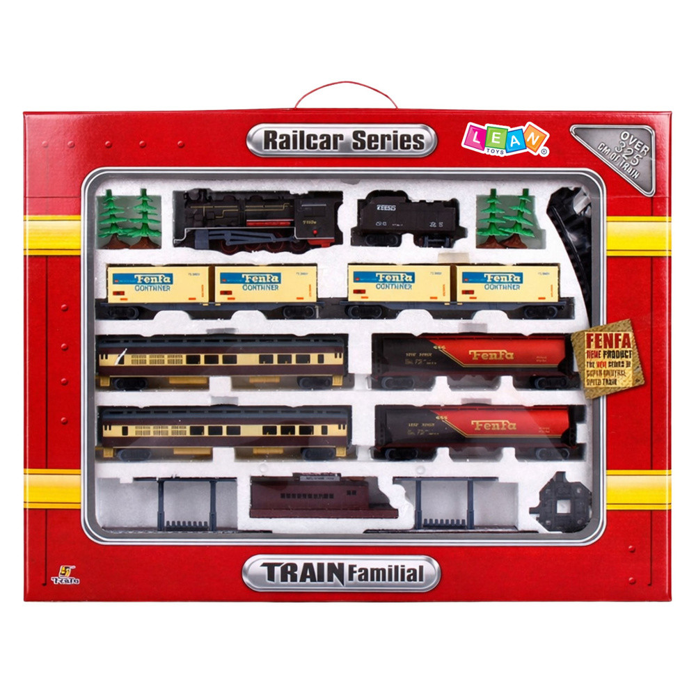 Fenfa Elektromos Vonat 6 Vagonnal - mindannyian, kicsik és nagyok egyaránt, szeretünk a sorral játszani. A gyerekeknek nagyszerű lehetőség a képzelőerő, a kézügyesség és a motoros koordináció fejlesztésére. A szülőknek lehetőségük van aktívan időt tölteni gyermekeikkel. Az egyes pálya- és vonatelemek összeszerelésével járó egyedi érzelmek csak bevezetés az igazi családi szórakozásba. A sor realisztikus megjelenése arra ösztönzi gyermekét, hogy remekül szórakozzon. A sínek különböző kombinációkban fektethetők le. A mozdony elemekkel működik. A készlet díszfákat is tartalmaz. A készlet tartalma: - mozdony - 6 kocsi - 4 fa - sínek - kb. 10 m. A színes dobozba csomagolt sín tökéletes ajándéknak. A csomag mérete: 70 cm x 54 cm x 6 cm