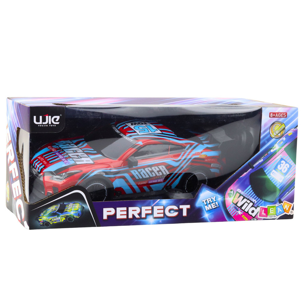 TÁVIRÁNYÍTÁSÚ VERSENYAUTÓ 27 MHz-ES VILÁGÍTÁSÚ KASZNÁLATTALEz az RC sportversenyautó tökéletes választás minden fiatal autórajongó számára, aki egy saját, dinamikával és fényeffektusokkal teli modellről álmodik. Az autót úgy tervezték, hogy maximális játékélményt nyújtson – realisztikus megjelenést, teljes vezetési funkcionalitást és egyedi világító karosszériát ötvözve. Ezáltal az autó nagyszerűen mutat mind izgalmas versenyek során, mind pedig feltűnő dekorációként a gyerekszoba polcán.A modell egyik nagy előnye a speciális világító vezérlőgomb, amellyel elemek nélkül be- és kikapcsolhatja a fényeffektust. Egyetlen kattintás elegendő a karosszéria világításához, látványos kiegészítője a játékélménynek. A 27 MHz-es távirányító sima és stabil vezetést biztosít, míg a kerékkiegyenesítés beállításának lehetősége lehetővé teszi a pálya beállítását és a jármű jobb irányítását.Az autó tartós anyagokból készült, így ellenáll az intenzív játéknak és hosszú élettartamú. Ideális választás a gyors autókat kedvelő gyerekeknek, és nagyszerű ajándékötlet a motoros koordináció és a képzelet fejlesztésére is. MŰSZAKI ADATOK: Szín: Kék és piros Autó hossza: 25,5 cm Méretek: 25,5 x 12,5 x 8 cm Csomag méretei: 33,5 x 16 x 14 cm Frekvencia: 27 MHz Funkciók: Teljes sebesség, megvilágított karosszéria, futóműállítás Autó tápellátás: 4 x AA 1,5 V (nem tartozék) Távirányító tápellátás: 2 x AA 1,5 V (nem tartozék) Elemes háttérvilágítás: 3 x AG13 LR44 (tartozék) A KÉSZLET TARTALMA: RC versenyautó Távirányító Karosszéria háttérvilágítás vezérlőgomb (AG13 elemekkel együtt)