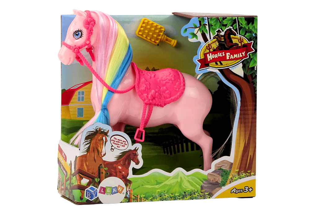 Figura ló színes sörényrel és rózsaszín kefe nyereggel