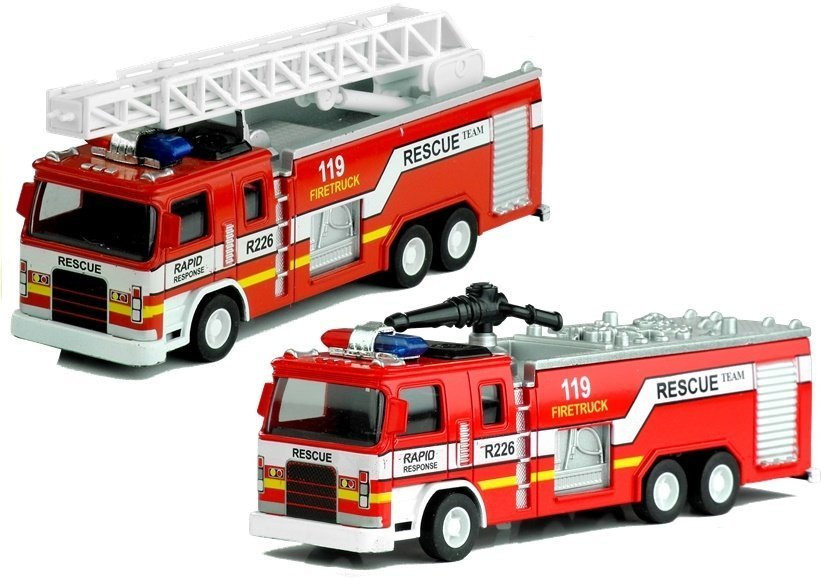 Tűzoltóautó játékautók – Különböző típusok Fiad arról álmodik, hogy egyszer tűzoltó lesz? Vagy talán a lányodat lenyűgözik a hatalmas tűzoltóautók és a bátor férfiak kockázatos munkája? Ezzel a játékkal hatalmas örömet szerezhetsz gyermekednek, lehetővé téve számára, hogy elmerüljön egy bátor sofőr és egy igazi tűzoltó szerepében! Ezek a tűzoltóautók 1:32 méretarányban készültek. Méretük lehetővé teszi az igazi tűzoltóautó pontos másolását, valamint kiemelik annak főbb felszereléseit. A feliratok, a kék fények és az olyan részletek, mint az ilyen típusú járművek jellegzetes feliratai, számos hasonlóságot mutatnak a valódi gépekkel. Az autók kiváló minőségű anyagból készültek, ami hosszú élettartamot, tartósságot és használatuk örömét biztosítja. A járművek gumikerekei forgathatók, így szórakoztató játékot biztosítanak különböző felületeken, míg a fő felszerelések, például a vízágyú vagy a létra mozgathatók. Ez a tűzoltóautó játék 3 éves kortól gyermekek számára készült. Tökéletes nemcsak a mindennapi játékhoz a társakkal, hanem nagyszerű kiegészítője lehet egy különféle járművekből álló gyűjteménynek is. Biztosak vagyunk benne, hogy tűzoltóautóink még a legigényesebb kisgyermekeket is kielégítik. A játékok vonzó dobozokban és vitrinekben kaphatók. Az autó méretei: - 16,5 cm x 4,5 cm x 6,5 cm. A csomagolás méretei: - 19 cm x 7 cm x 8,5 cm. Az autó megvásárlása után kérjük, jelezze, melyik modellt szeretné.