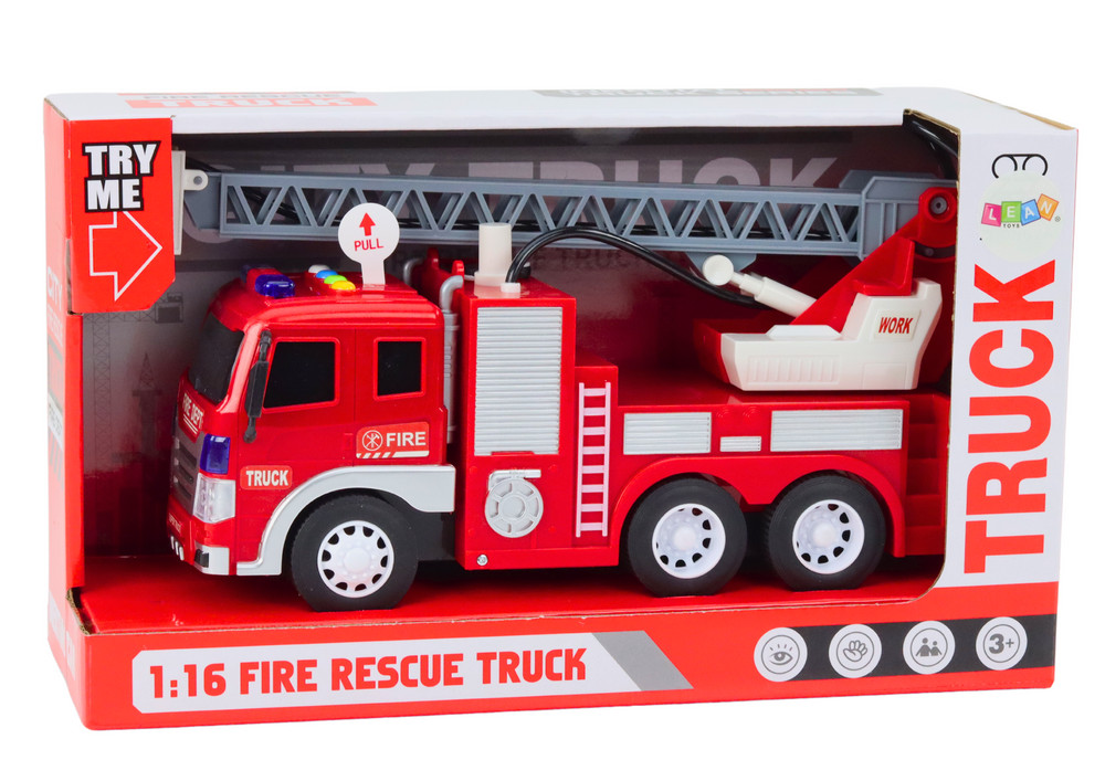 Tűzoltóautó gémmel 1:16 Fények Hangok Vízhajtás Piros
