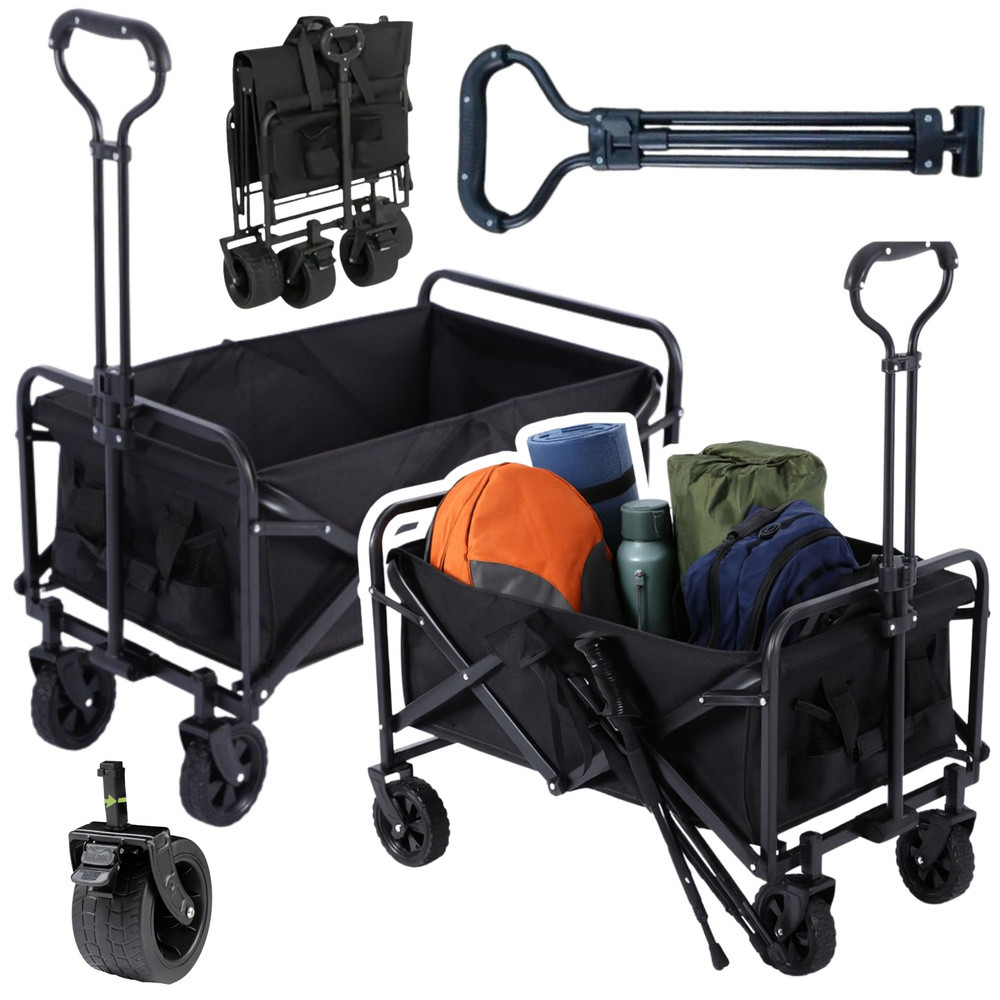80 KG-OS ÖSSZECSUKHATÓ STRAND- ÉS KERTI UTAZÓKOCSI Ez a 80 kg-os összecsukható strand- és kerti kocsi praktikus megoldás szinte bármilyen helyzetre. Robusztus fém és műanyag konstrukciója, valamint 120 literes űrtartalma lehetővé teszi a nehéz és nagyméretű tárgyak kényelmes szállítását – a strandfelszerelésektől kezdve a kerti szerszámokon át egészen az élelmiszerekig. Sokoldalú felhasználásának köszönhetően ez a kocsi ideális társ strandoláshoz, túrázáshoz, kertészkedéshez és házimunkához. Ez a modell 4 tartós kerékkel rendelkezik, amelyek biztosítják a sima gördülést különböző felületeken. Az összecsukható kialakítás megkönnyíti az összecsukást, így könnyen tárolható és szállítható. Két praktikus italtartó zsebbel és ergonomikus, habbevonatú fogantyúval is rendelkezik a kényelmes fogás érdekében. Akár 80 kg-os teherbírásával ez a kocsi könnyű és nehéz terheket is elbír. Nélkülözhetetlen társ a mindennapi feladatokhoz, utazáshoz és szabadidőhöz. MŰSZAKI ADATOK: Szín: Fekete Anyag: Fém, Műanyag, Szövet Típus: Összecsukható utazókocsi Maximális terhelés: 80 kg Űrtartalom: 120 L Kerekek száma: 4 Gumiabroncs típusa: Műanyag A kocsi teljes méretei: 74,9 x 48 x 90 cm Csomag méretei: 66 x 51 x 13 cm Extrák: 2 italtartó zseb, habbal bevont fogantyú A KÉSZLET TARTALMA: Összecsukható strand-, utazó- és kerti kocsi csomag