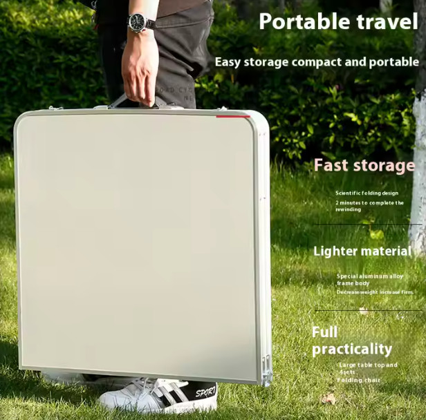 TURISTA SZETT ÖSSZECSUKHATÓ KERTI ASZTAL 4 SZÉKKEL, FEHÉR BŐRÖNDÖN A turista szett összecsukható kerti asztal 4 székkel, fehér bőrönddel egy kész és praktikus megoldás mindazok számára, akik nagyra értékelik a kényelmet, a mobilitást és az esztétikát a szabadban való pihenés során. Átgondolt kialakításának köszönhetően a szett lehetővé teszi, hogy néhány pillanat alatt kényelmes helyet teremtsen étkezéshez, pihenéshez vagy együtt töltött időhöz családjával és barátaival - függetlenül attól, hogy hol van. Az asztal és a székek összecsukható szerkezete, amely összecsukás után egy praktikus, fogantyúval ellátott bőrönd kompakt formáját ölti, a teljes szettet kivételesen könnyen tárolhatóvá és szállíthatóvá teszi. Ez különösen fontos utazások során, amikor a csomagtartóban minden centiméternyi hely számít. A szett egy könnyű, mégis masszív asztalt és négy kényelmes széket tartalmaz, amelyek tökéletesek kempingezéshez, a parkban, a kertben, az erkélyen vagy akár a teraszon való használatra. A modern dizájn fehér asztallappal és ezüst alumínium vázzal koherens és esztétikus egészet alkot, amely bármilyen környezetbe jól illeszkedik - a természettől a rendezett otthoni térig. Ez a megoldás nemcsak leegyszerűsíti a szabadtéri kikapcsolódás megszervezését, hanem helytakarékosságot is lehetővé tesz - összecsukás után a teljes szett elfér egy szekrényben, garázsban vagy az ágy alatt. SPECIFIKÁCIÓ: Típus: Összecsukható turista szett Asztal tartalma: 1 összecsukható asztal + 4 összecsukható szék Asztal méretei: 120 × 60 × 66 cm Méretek összecsukás után (bőrönd): 60 × 60 × 10 cm Csomagolás méretei: 65 × 62 × 8 cm Anyag: alumínium, MDF Szín: fehér (tetej), ezüst (váz) Maximális asztalterhelés: akár 30 kg Maximális székterhelés: akár 100 kg (egyenként) Asztal súlya: kb. 7,5 kg Cél: kempingezés, kert, erkély, parcella, utazás A SZETT TARTALMA: 1x összecsukható asztal 4x összecsukható szék Integrált hordozófogantyú (bőrönd)