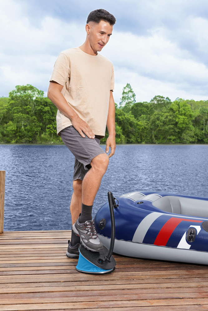 Lábpumpa 29 x 22 cm Bestway 62005 Ha gyorsan fel szeretnél fújni egy matracot, gyűrűt vagy strandlabdát, mindenképpen szükséged lesz egy Bestway pumpára. Cserélhető végeinek köszönhetően tökéletes mindenféle felfújható termékhez. A pumpa alkalmas felfújásra és leeresztésre is. Kis méretének köszönhetően ideálisan magaddal viheted a medencébe vagy a strandra. Főbb jellemzők: - 3 cserélhető vég - leeresztésre is használható - flexibilis tömlő - méretek 29 cm x 22 cm - teljesítmény 1,6 l / ciklus Súly: 0,8 kg Csomag méretei: Kb. 30 cm x 24 cm x 10 cm