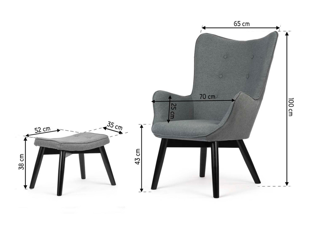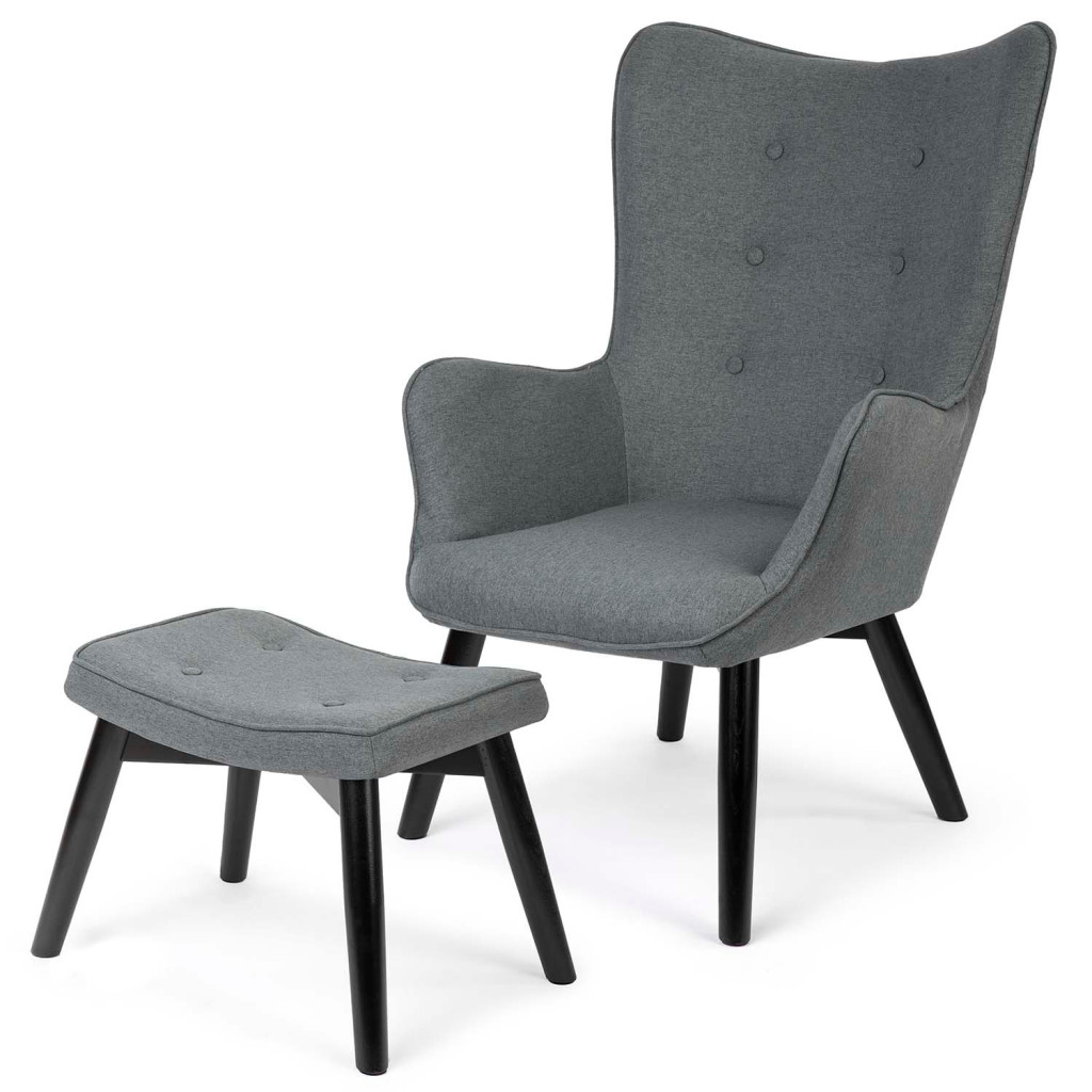 Skandináv stílusú szárnyas szék lábtartóval, szürke - Sofotel