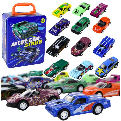 Súrlódós meghajtású járműkészlet 12 ELE fémből 1:64   Az 1:64 méretarányú autókészlet rendkívül vonzó játék a kis autórajongók számára. 12 különböző formájú és színes autót tartalmaz, amelyek mindegyike egyedi megjelenésű, és kék, zöld, narancssárga és rózsaszín árnyalatokban készült. Ez a tökéletes megoldás azoknak a gyerekeknek, akik szeretnek különféle formájú és stílusú járművekkel játszani. Minden autó súrlódós meghajtással van felszerelve, ami azt jelenti, hogy egyszerűen hátra kell húzni a járművet, majd elengedni, hogy nagy sebességgel előre haladjon. Ez sok örömet és szórakozást nyújt, amikor a gyerekek a padlón vagy az asztalon versenyeznek velük. A fém bőrönd, amelyben az autók találhatók, igazi kincs a kis gyűjtők számára. A bőrönd 18 dobozzal rendelkezik, és ezek közül 6-ba beletehetjük kedvenc járműveinket. Minden doboz téglalap alakú, így az autók biztonságosan elhelyezhetők, és nem sérülnek tárolás vagy szállítás közben. A bőrönd elegáns sötétkék színű, sportkocsi motívummal, ami stílusos megjelenést kölcsönöz neki. A fém csat biztosítja, hogy a bőrönd tartalma biztonságosan zárva maradjon, az összecsukható szállítófogantyú pedig megkönnyíti a készlet bárhová történő szállítását. Ez az autókészlet nemcsak sok szórakozást és örömet nyújt a gyerekeknek a játékok során, hanem segít fejleszteni motoros készségeiket és képzelőerejüket is. Tökéletes ajándék a kis autórajongóknak, akik kedvenc járműveikkel saját versenyeket és kalandokat hozhatnak létre.   A készlet tartalma: - 12 db 1:64-es jármű - fém bőrönd - eredeti csomagolás   Jármű méretei: ~7 cm x 3,5 cm   Bőrönd méretei: 20 cm x 15 cm x 9 cm   CE tanúsítvánnyal rendelkezik és megfelel az EN71 szabványnak. A játék 3 év feletti gyermekek számára készült.
