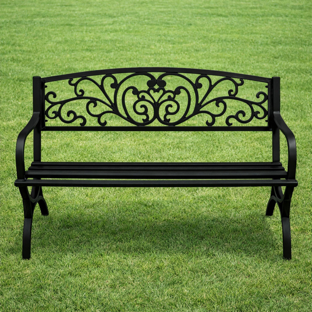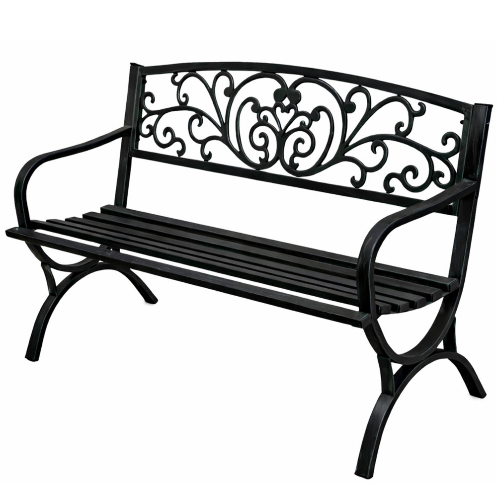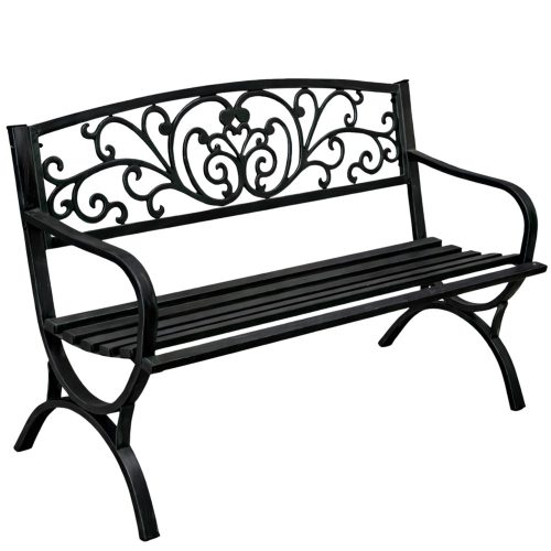 Kerti Pad Terasz Kerti Fém 2 Személyes Díszített Fekete 127 cm