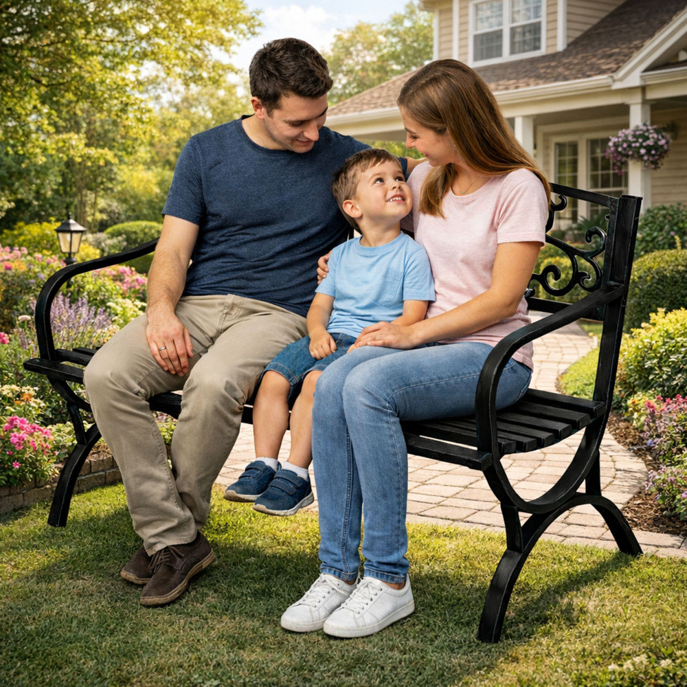 KÉTSZEMÉLYES FÉM KERTI PAD, FEKETE, DEKORATÍV, TERASZ, KERTEz a stílusosan díszített fém kerti pad elegáns és praktikus kiegészítője kertjének, teraszának vagy erkélyének. Klasszikus kialakítása és díszes háttámlája nemcsak kényelmes helyet biztosít a pihenéshez, hanem esztétikus megjelenést is kölcsönöz kültéri terének. A finom díszítések egyedi karaktert kölcsönöznek a padnak, így tökéletes kiegészítője mind a klasszikus, mind a modern kerteknek. A kültéri bútoroknak rendkívül ellenállónak kell lenniük a kedvezőtlen időjárási viszonyokkal, például a heves esőzéssel, a napfénynel és a széllel szemben. Emiatt a fémből, például acélból vagy öntöttvasból készült bútorok népszerű választás a kerttervezéshez. Fém kerti padjaink még a legzordabb időjárási körülmények között is tökéletesen teljesítenek. Ez azt jelenti, hogy egész évben károsodás nélkül használhatók a szabadban. Ez a fém kerti pad alkalmas kertekbe, teraszokra, erkélyekre és pavilonokba. Bárhová is helyezi, elegáns és praktikus dekorációvá válik, amely a szabadban való kikapcsolódásra csábít. A tágas ülőfelület kényelmes ülőhelyet biztosít két személy számára, az ergonomikusan kialakított karfák pedig fokozzák az ülési kényelmet. A fém kerti padok nem fakulnak ki a napon, és sokáig megőrzik esztétikai megjelenésüket. A masszív fémszerkezet stabilitást és biztonságot nyújt. Tartós szerkezetének köszönhetően a pad ellenáll a mindennapi használatnak és a különféle időjárási viszonyoknak. SPECIFIKÁCIÓK: Terméktípus: Kerti pad Szín: Fekete Anyag: Fém Szerkezet: Masszív fém szerkezet Rendeltetésszerű használat: Kert, Terasz, Erkély, Veranda Befogadóképesség: 2 fő Teljes méretek: 127 x 60 x 85 cm Ülésmagasság: 40 cm Karfák magassága: 61,5 cm Maximális teherbírás: 220 kg Csomagolás méretei: 129 x 61 x 8 cm Időjárásállóság: Igen Vízállóság: Igen Összeszerelés: Könnyű összeszerelés A KÉSZLET TARTALMA: Fekete fém kerti pad Összeszerelési hardver