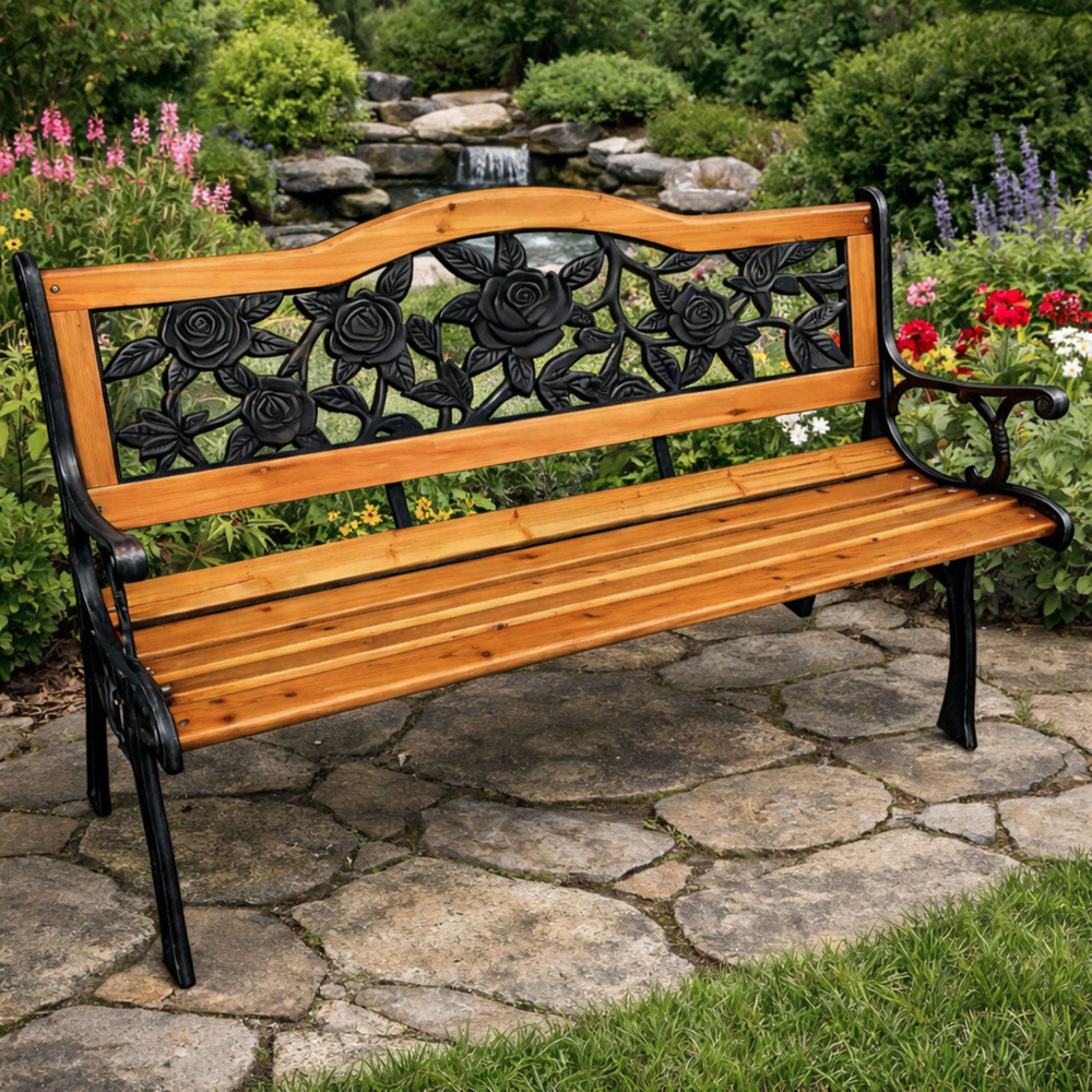 Kerti pad Fa Fém Parki Pad Háttámlával