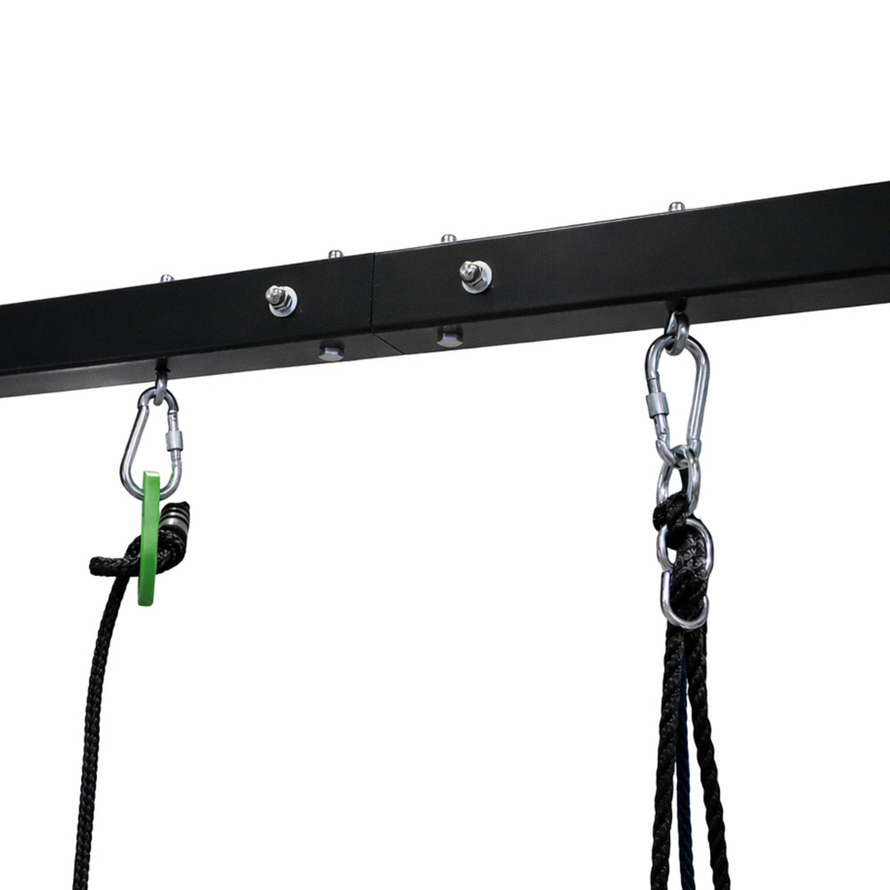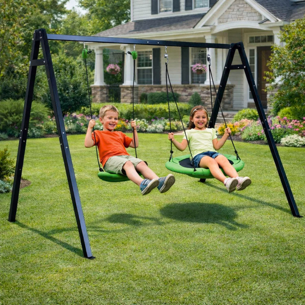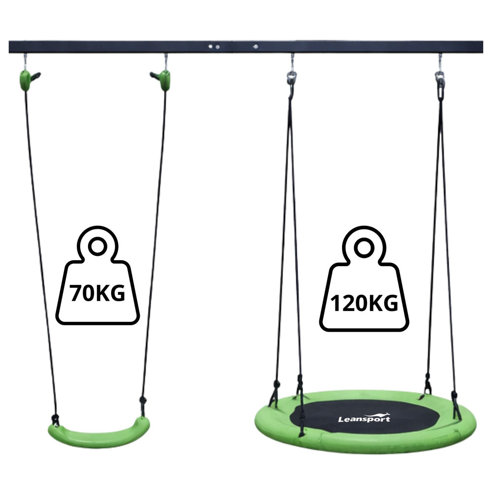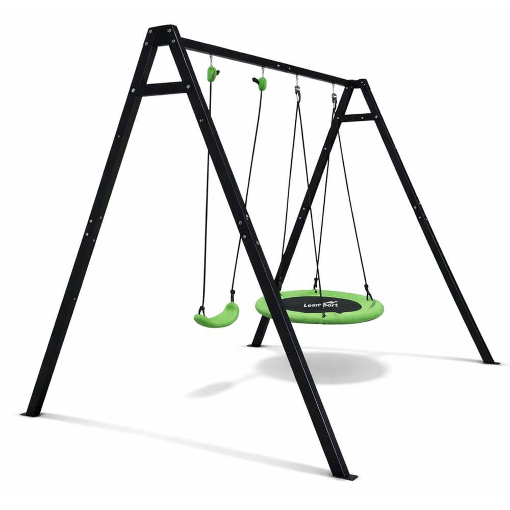 2 AZ 1-BEN KERTI HINTAVÁZ GYERMEKEKNEK - GÓLYAFÉSZEK + ÜLÉSEz a 2 az 1-ben kerti hinta egy funkcionális és modern szett, amelyet gyermekek számára terveztek, aktív kültéri játékot és kényelmes használatot biztosítva minden nap. Masszív, tartós acélból készült szerkezete stabilitást és biztonságot biztosít, így tökéletes a kertbe, kiskertbe vagy otthoni játszótérre. Tökéletes megoldás azoknak a szülőknek, akik tartós és biztonságos hintát keresnek gyermekeiknek. A megfelelő vastagságú, négyzet alakú acélcsövekből készült váz nagy teherbírást és hosszú élettartamot biztosít. A kiegészítő megerősítő elemek és a rögzítőkészlet lehetővé teszi a biztonságos rögzítést a talajhoz, ami jelentősen növeli a biztonságot használat közben. A 2 az 1-ben szett két ülést tartalmaz, így változatos játékformákat tesz lehetővé. A hinta megfelelő hosszúságú, tartós kötelekkel van felszerelve a kényelmes használat és a gyermek igényeihez való igazodás érdekében. Az építéséhez felhasznált anyagok időjárásállóak, így a hinta hosszú ideig megőrzi megjelenését és funkcionalitását. A modern dizájn és a zöld ülőfelületek révén a hinta zökkenőmentesen illeszkedik bármilyen kerti térbe, vonzó helyet teremtve a játékhoz és a kikapcsolódáshoz. SPECIFIKÁCIÓK: Típus: 2 az 1-ben kerti hinta kerettel Méretek: 260 x 210 x 173 cm Szerkezet: Négyzet alakú acélcső Cső méretei: 50 x 50 mm Felső cső: 50 x 1,5 mm Váz vastagsága: 50 x 1,5 mm Támasztócső: 38 x 1,0 mm Szállítócső: 19 x 0,8 mm Rögzítőkészlet: M6 x 293 mm x 4 db Gólyafészek átmérője: 80 cm Ülés méretei: 36 x 18 cm Maximális terhelés: 200 kg Kötelek: 3,4 m x 2 db Ülés színe: Zöld Jellemzők: Stabil szerkezet, nagy tartósság, időjárásálló Alkalmazás: Kert, kiskert, JátszótérMéretekCsomagolás méretei: 130 x 27 x 21 cmKÉSZLET TARTALMA:Hintakeret2 x ülésRögzítőkötelekRögzítőkészletRögzítőelemek