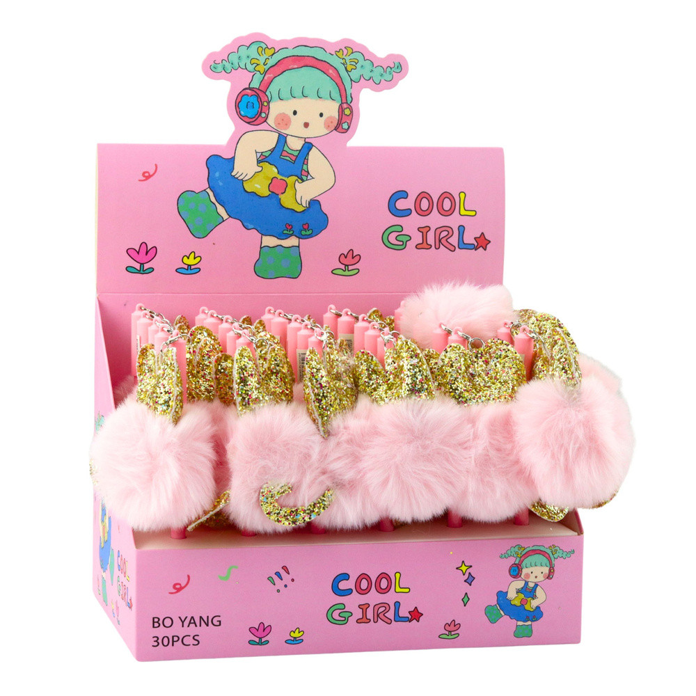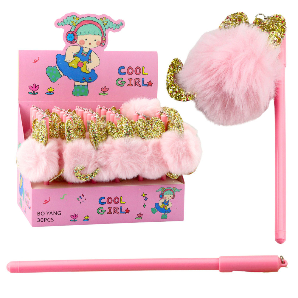 Gél toll rózsaszín pompon kupakkal és kék tintával 17 cm 0,5 mm