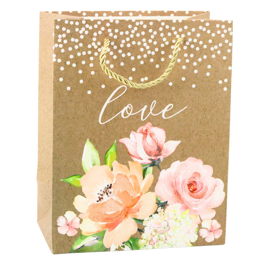 Ajándéktáska Szerelem Felirat Virágok 23 x 18 x 10,5 cm
