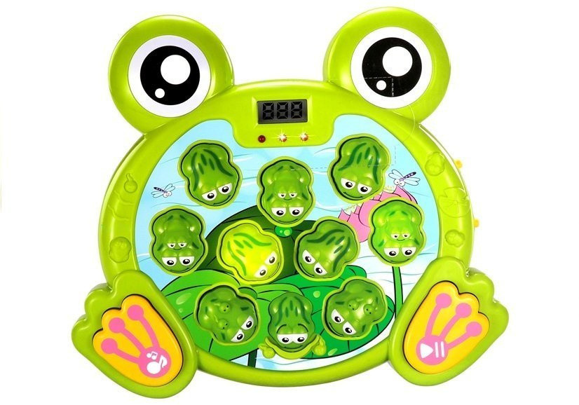 Világító Békák Kalapáccsal Arcade Játék Az együttes ügyességi játékok nagyszerű szórakozást nyújtanak az egész család számára, kellemesen eltölthetik az időt, miközben fejlesztik és tanítják a reflexeket, a motoros koordinációt, az érzékelést és más hasznos készségeket. Ez az ikonikus játék arról szól, hogy időnként gumifejekkel kell megütni a kalapácsot, és a békák világítani kezdenek. Szabályai nagyon egyszerűek, így még a kisgyermekek is pillanatok alatt megtanulják őket - a játék 3 éves kortól ajánlott gyermekek számára. A játékban a győzelem a játékosok egyéni hajlamától, megfigyelőképességüktől és reflexeik sebességétől függ. A játék egy tartós, béka alakú műanyag táblából, 10 kis békából és egy piros-fehér kalapácsból áll. Ezenkívül a játék hátulján tapadókorongokkal van felszerelve, amelyek lehetővé teszik a kiválasztott helyre rögzítést, valamint gombokkal, amelyek aktiválják a hangot és a dallamokat. Kisebb gombokkal elnémíthatja és teljesen elnémíthatja a játékot. A zöld béka tetején egy LCD kijelző található, amely a szerzett pontok számát mutatja. A világító békák minden korosztályú gyermek számára nagyszerű szórakozást nyújtanak - a játék számos körben növeli a világító elemek gyakoriságát, lehetővé téve az egészséges versenyzés elsajátítását - mind a szülőkkel, mind a társakkal. A tanulási mód 26, egyenként 30 másodperces szintből áll. A Szuper mód 12 szintből áll, de ezek sokkal nehezebbek - minél magasabb a stimulációs szint, annál szórakoztatóbb. A játék tetején található három LED jelzi a játékban lévő "esélyeket". Amikor mind világít, az életed a 6. szinten van - minden további LED kialszik, és két "esélyt" veszítesz. Amikor mind kialszik, a versenyzőnek újra kell kezdenie a játékot. A készlet elemeinek méretei: - tábla: 30 cm x 28 cm, - kalapács: 24 cm x 8 cm. A csomag mérete: 48 cm x 36 cm x 8 cm.