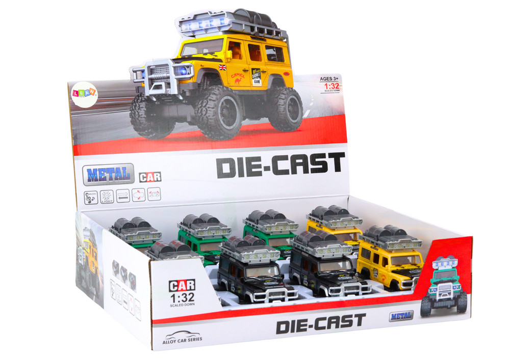 Guard Terepjáró 1:32 Fém Meghajtású Világítás Hangok Az 1:32 méretarányú fém terepjáró egy egyedi modell, amely lenyűgöző a masszív kidolgozásával és a részletekre való odafigyelésével. Szerkezete tartós anyagokon alapul, amelyek hosszú élettartamot és sérülésállóságot garantálnak intenzív játék során. A fém burkolat realisztikus megjelenést kölcsönöz neki, amely a valódi terepjárókra emlékeztet. A gumikerekek kiváló tapadást biztosítanak különböző felületeken, ami dinamikus és problémamentes vezetést tesz lehetővé. A lengéscsillapítók használatának köszönhetően az autó jól megbirkózik az egyenetlen tereppel, és ezen felül ez a mechanizmus fény- és hangeffektusokat is aktivál. A nagy intenzitású fények lehetővé teszik a játékot még sötétben is, extra dimenziót adva az izgalomnak és az örömnek. Az autó súrlódós meghajtással is fel van szerelve, ami azt jelenti, hogy csak enyhén kell megnyomni az előrehaladáshoz. Ez a mechanizmus nemcsak növeli a játék realizmusát, hanem lehetővé teszi a gyerekek számára, hogy könnyen irányítsák a járművet, miközben fejlesztik kézügyességüket és motoros koordinációjukat. További előny a nyitható csomagtartó ajtó és motorháztető, amelyek még interaktívabb játékot tesznek lehetővé. Az egész egy teljes és lebilincselő készletet alkot, amely rengeteg szórakozást és lehetőséget kínál a kreatív játékra. Ez a fém terepjáró tökéletes választás a kis autórajongóknak, akik lenyűgöző kalandokat szeretnének átélni a saját világukban. Az autót 3 db AG13 elem működteti, amelyek a készlet részét képezik. A gyűjtőcsomag 8 darabot tartalmaz. A játékok külön kaphatók. Az autók három színváltozatban kaphatók: sárga, zöld, fekete. Kérjük, vásárlás előtt válasszon egy színt. Ellenkező esetben véletlenszerűen kerül kiválasztásra. Az autó méretei: 16,5 cm x 10,5 cm x 8,5 cm. A gyűjtőcsomag méretei: 43,5 cm x 39 cm x 11 cm. CE tanúsítvánnyal rendelkezik és megfelel az EN71 szabványnak. 3 év feletti gyermekek számára készült.