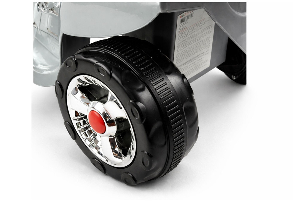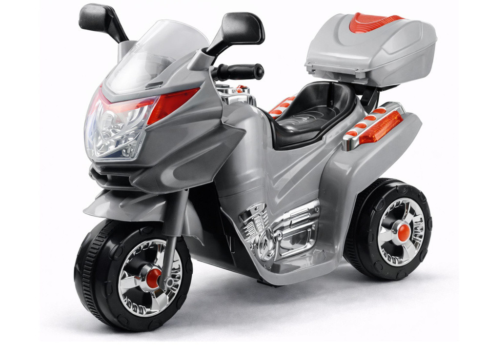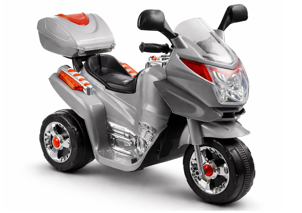 HC8051 Ezüst színű akkumulátoros motorkerékpárEz az ezüst színű versenyautó biztosan mosolyt csal minden kisgyermek arcára, változatossá téve a sétákat és a szabadtéri tevékenységeket. Kialakítása a kisgyermekek növekedéséhez igazodik, így fantasztikus első akkumulátoros jármű a gyermekek számára. A játék pozitív hatással lesz a gyermek fejlődésére, megtanítja őt a sebesség és a távolság önálló becslésére, és fejleszti a motoros készségeket, amelyek elengedhetetlenek a korai életben.Az akkumulátoros motorkerékpár ezüst változata szokatlan színvilágával és kialakításával, valamint a teljes méretű járművekre jellemző színes, kontrasztos matricák formájában díszített elemeivel is szemet gyönyörködtető. A fényes ezüst karosszéria, amely tartós és tömör ABS műanyagból készült, modelljelzésekkel van ellátva, így a jármű nagyon modern és eredeti megjelenést kölcsönöz. Ezt az élményt fokozzák a kipufogórendszerre emlékeztető króm utánzatú elemek, amelyek biztosan lenyűgöznek minden gyermeket. Egy másik fontos jellemző a háromkerekű kialakítás, amely megkönnyíti azoknak a gyerekeknek a dolgát, akiknek nehézséget okoz az egyensúlyuk megtartása vezetés közben. A szórakozás még soha nem volt ilyen egyszerű!Az ezüst színű HC8051 speedster 6V-os, 4,5Ah-s zselés akkumulátorral és 18W-os STRONG motorral van felszerelve. Ezek az alkatrészek együttesen körülbelül 4 km/h sebességet tesznek lehetővé, ami minden gyermek számára óriási szórakozást nyújt. Továbbá, ez a modell két sebességfokozattal rendelkezik – előre és hátra –, ami sokkal könnyebbé teszi a játékot. Ennek az akkumulátoros gyermekmotornak a kialakítása nagyon átgondolt – 19 cm-es, gumi futófelületű kerekeken ül. Ez a megoldás lehetővé teszi a csendes utazást különféle burkolt felületeken. A HC8051 modell további jelentős előnyei közé tartozik az átlátszó idom, az oldalsó tükrök és a LED-világítás, amelyek növelik a gyermek láthatóságát az úton. Az ezüst motor hátulján egy nyitható csomagtartó található, ahol a kis sofőr tárolhatja kincseit. Ez támasztékként is szolgál a kicsi számára, megakadályozva, hogy túlságosan hátradőljön. Kötelező funkció a kormány közelében található kürt és zenegombok. Most minden kicsi igazi sofőrnek érezheti magát, aki dudál az elhaladó barátaira. A HC8051 akkumulátoros gyermekmotort 3 év feletti gyermekek számára tervezték. A motorkerékpár miniatürizált változata tanúsított, kiváló minőségű anyagokból készült, garantálva a tartósságot és a szilárdságot, amit a CE-tanúsítvány is kiemel. A kisgyermekek számára készült akkumulátoros jármű eredeti dobozában érkezik, amely tartalmazza az összes alkatrész egyszerű összeszereléséhez szükséges utasításokat, valamint az akkumulátort és a töltőt. Csomag méretei: 60 cm x 37 cm x 36 cm Súly: 6,4 kg