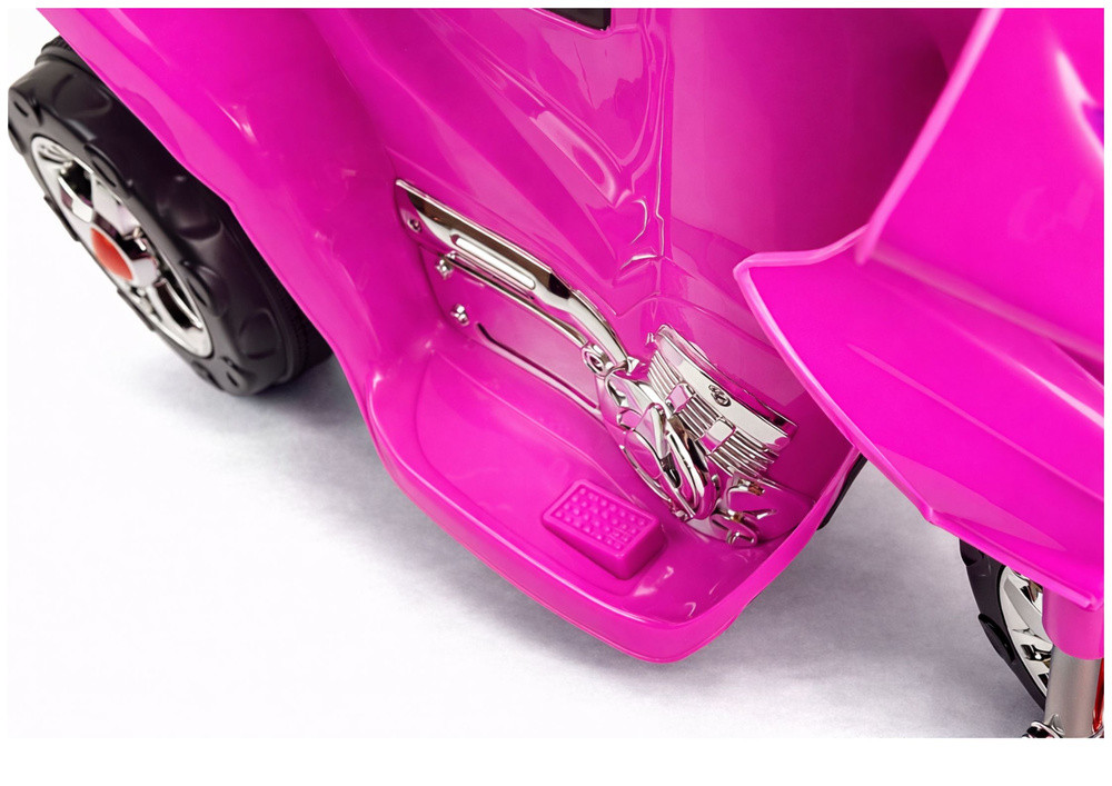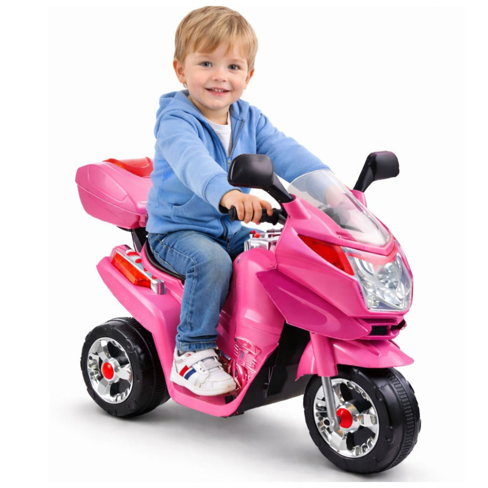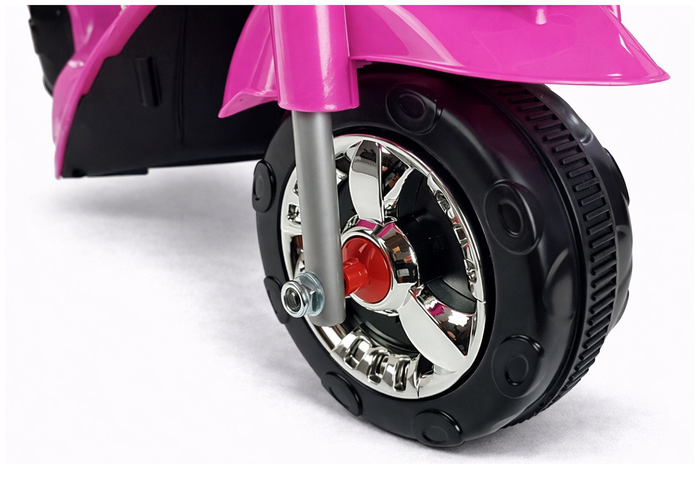 HC8051 Akkumulátoros Motorkerékpár RózsaszínEz a színes versenyautó biztosan mosolyt csal minden kisgyermek arcára, változatossá téve a sétákat és a szabadtéri tevékenységeket. Kialakítása a kisgyermekek növekedéséhez igazodik, így fantasztikus első akkumulátoros jármű a gyermekek számára. A játék pozitív hatással lesz a gyermek fejlődésére, megtanítja őt a sebesség és a távolság önálló becslésére, és fejleszti a motoros készségeket, amelyek elengedhetetlenek a korai életben.Az akkumulátoros motorkerékpár rózsaszín változata szokatlan színvilágával és dizájnjával, valamint a teljes méretű járművekre jellemző színes, kontrasztos matricák formájában díszített elemeivel is szemet gyönyörködtető. Az élénk rózsaszín karosszéria, amely tartós és tömör ABS műanyagból készült, modelljelzésekkel rendelkezik, így a jármű nagyon modern és eredeti megjelenést kölcsönöz. Ezt az élményt fokozzák a kipufogórendszerre emlékeztető krómozott elemek, amelyek biztosan lenyűgöznek minden gyermeket. Egy másik fontos jellemző a háromkerekű kialakítás, amely megkönnyíti a lányok számára, akiknek nehézséget okoz az egyensúly fenntartása vezetés közben. A szórakozás még soha nem volt ilyen egyszerű!A rózsaszín HC8051 versenyautó 6V-os 4,5Ah-s zselés akkumulátorral és 18W-os STRONG motorral van felszerelve. Ezek az alkatrészek együttesen körülbelül 4 km/h sebességet tesznek lehetővé, ami minden gyermek számára óriási szórakozást nyújt. Ráadásul ez a modell két sebességfokozattal rendelkezik – előre és hátra –, ami sokkal könnyebbé teszi a játékot. Ennek az akkumulátoros lánymotornak a kialakítása nagyon átgondolt – 19 cm-es, gumi futófelületű kerekeken ül. Ez a megoldás lehetővé teszi a csendes utazást különféle burkolt felületeken. A HC8051 modell további jelentős előnyei közé tartozik az átlátszó idom, az oldalsó tükrök és a LED-világítás, amelyek növelik a gyermek láthatóságát az úton. A rózsaszín motor hátulján egy nyitható csomagtartó található, ahol a kis sofőr tárolhatja kincseit. Ez a csomagtartó a kicsi számára háttámlaként is szolgál, megakadályozva, hogy túlságosan hátradőljön. Kötelező funkció a kormány közelében található kürt és zenegombok. Most minden kicsi igazi sofőrnek érezheti magát, aki dudál az elhaladó barátaira. A HC8051 akkumulátoros gyermekmotort 3 év feletti lányok számára tervezték. A motorkerékpár miniatürizált változata tanúsított, kiváló minőségű anyagokból készült, garantálva a tartósságot és a szilárdságot, amit a CE-tanúsítvány is kiemel. A kisgyermekek számára készült akkumulátoros jármű eredeti dobozában érkezik, amely tartalmazza az összes alkatrész egyszerű összeszereléséhez szükséges utasításokat, valamint az akkumulátort és a töltőt. Csomag méretei: 60 cm x 37 cm x 36 cm Súly: 6,4 kg