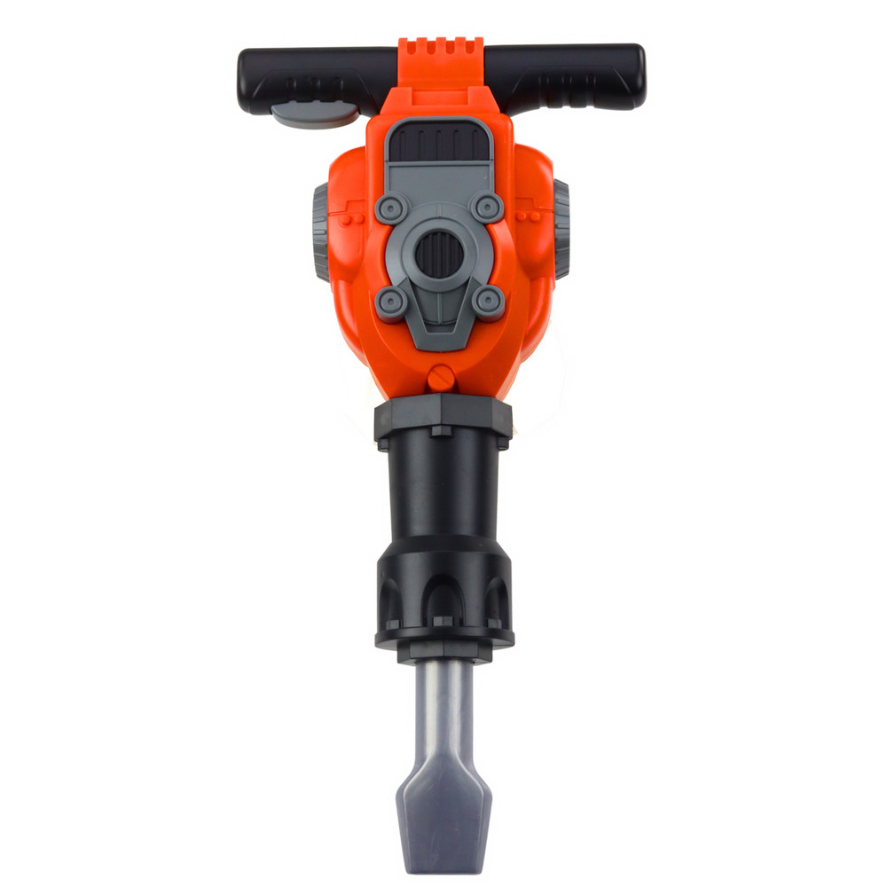 JÁTÉK PNEUMATIKUS KALAPÁCS NARANCS SZÍNŰ SZEMÜVEGES GYEREKEKNEK Egy játék pneumatikus kalapács védőszemüveggel nagyszerű ötlet azoknak a gyerekeknek, akik szeretnek barkácsolni és utánozni a felnőtteket munka közben. Ez a realisztikus, narancssárga színű készlet kreatív és biztonságos játékot tesz lehetővé, fejleszti a képzeletet és a kézügyességet. A kalapácsot a legkisebbek szem előtt tartásával tervezték - kényelmes nyéllel, vonzó dizájnnal és gombokkal rendelkezik, amelyek megkönnyítik a használatot és realisztikussá teszik a játékot. A hang- és rezgésfunkciónak köszönhetően a kalapács szimulálja a szerszám valódi működését. Elemmel működik, ami dinamikus, interaktív játékot tesz lehetővé. A készlet tartalmaz egy speciális, rugalmas szalagon rögzített védőszemüveget, amely nemcsak kiegészíti a megjelenést, hanem megtanítja a gyerekeket a biztonsági szabályokra is a szerszámokkal való munkavégzés során. A termék tartós, szabványoknak megfelelő műanyagból készült, így ajándéknak is tökéletes. SPECIFIKÁCIÓ: • Kalapács méretei: 36,5 cm x 18 cm x 8 cm • Csomagolás méretei: 39 cm x 23 cm x 10,5 cm • Anyag: műanyag • Tápegység: 3 x 1,5 V AA (nem tartozék) • Szín: narancssárga-fekete A KÉSZLET TARTALMA: • Játék légkalapács • Védőszemüveg • Ajándékcsomagolás