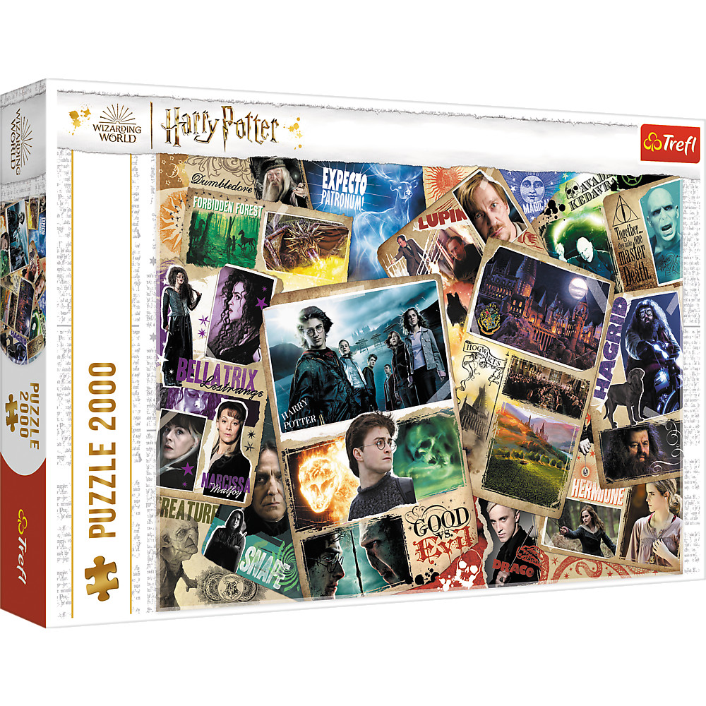 Harry Potter 2000 darabos kirakó. Harry Potter - Hősök Trefl 27123 Egy 2000 darabból álló kirakó, amely a Harry Potter filmsorozat szereplőit ábrázolja. Összerakás után egy 961x682 mm-es kép jön létre. A termék kiváló minőségű anyagokból készült, speciális, fényvisszaverő kalanderezett papír felhasználásával, ami megkönnyíti az összeszerelést. A termék Lengyelországban készült, és a gyártásához környezetbarát anyagokat használtak fel.