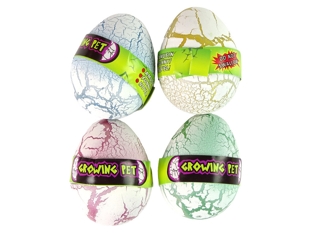 Kikelő varázslatos dinoszaurusz tojás, növekvő, 6 cm, fehér.   Az általunk bemutatott játék lehetőséget ad a gyerekeknek, hogy megfigyeljék a dinoszauruszok kikelését egy műanyag tojásból. A varázstojás nemcsak a szórakozásra, hanem a tanulásra és a felelősségvállalásra is lehetőséget kínál. A kikelő állat megtanítja a gyerekeket a természet tudományára, az élet körforgására és felkelti a kíváncsiságot. Nagyon fontos megjegyezni, hogy a dinoszauruszok tojásból való kikelése az egyik legjobb játék lesz gyermeke számára.   Semmilyen körülmények között ne törje össze a tojást, csak kövesse a játék csomagolásának hátulján található utasításokat. 1. Helyezze a tojást egy tálba, amelyben gyermeke megfigyelheti. 2. A tálat vízzel kell feltölteni, hogy ellepje a tojást, a víz hőmérséklete ne legyen 35 Celsius-foknál alacsonyabb. 3. A tojás 12-24 óra elteltével lassan repedni kezd. Miután a tojáshéj teljesen feltört, adjon friss vizet a tálhoz. 4. A gyík 24-48 órán át fejlődik. 5. 48 óra elteltével az állatot egy nagyobb tartályba helyezheti, és nézheti, ahogy napról napra növekszik. A termék egy darab színes tojást tartalmaz. A fotó tájékoztató jellegű, a termék megjelenése eltérhet az eredetitől. Négy színváltozatban kapható: - fehér hozzáadott sárgával - fehér hozzáadott kékkel - fehér hozzáadott zölddel - fehér hozzáadott rózsaszínnel. Kérjük, a rendelési megjegyzésben jelezze a színválasztását. Egy csomag méretei: 6 cm x 5 cm x 9 cm Kérjük, adjon hozzá kb. 1-2 cm-t csomagonként. A játék szettben is megvásárolható, amely összesen 12 darab színes tojást tartalmaz, a fenti színek mindegyikéből 3 darabot. A játék megfelel az EN71 szabványnak és a CE tanúsítvánnyal rendelkezik. 3 éves kortól gyermekek számára alkalmas.
