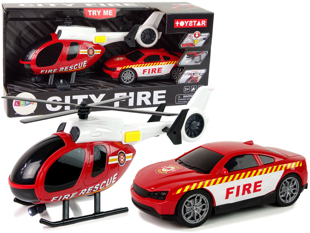 Helikopteres autós tűzoltóautó hangja Mostantól minden autó- és tűzoltóautó-rajongó beleélheti magát egy tűzoltó szerepébe, és elindíthatja a mentési akciót. A mentőautók kétségtelenül a gyerekek által leginkább kívánt játékok. A játék helikopterek és rendőrautók azok a játékok, amelyekről minden bátor kis tűzoltó álmodik. A nagy piros helikopter mozgatható és forgó propellerekkel rendelkezik, amelyeket manuálisan mozgathat, hogy repülés benyomását keltse. A propellerek fesztávolsága teljes 20 cm. A helikopter oldalán található gomb aktiválja a fény- és hangeffektusokat a még nagyobb szórakozás érdekében! A felszállás és a repülés hangja realisztikusabb érzetet nyújt. Az autó jellegzetes tűzmatricákkal, sötétített ablakokkal és gumiabroncsokkal rendelkezik. Sík felületen hihetetlen sebességet ér el. A játékok műanyagból készültek, így könnyűek és teljesen biztonságosak. Készlet elemei: - helikopter - tűzoltóautó A játék elemeinek méretei: - helikopter: 27 cm x 8 cm x 13 cm - tűzoltóautó 17 cm x 8 cm x 6 cm A készlet csomagolásának méretei: 37 cm x 17 cm x 12 cm 3 év feletti gyermekek számára alkalmas. A játék három AG13 elemmel működik. CE tanúsítvánnyal rendelkezik, ami garantálja a használat kényelmét és biztonságosságát.