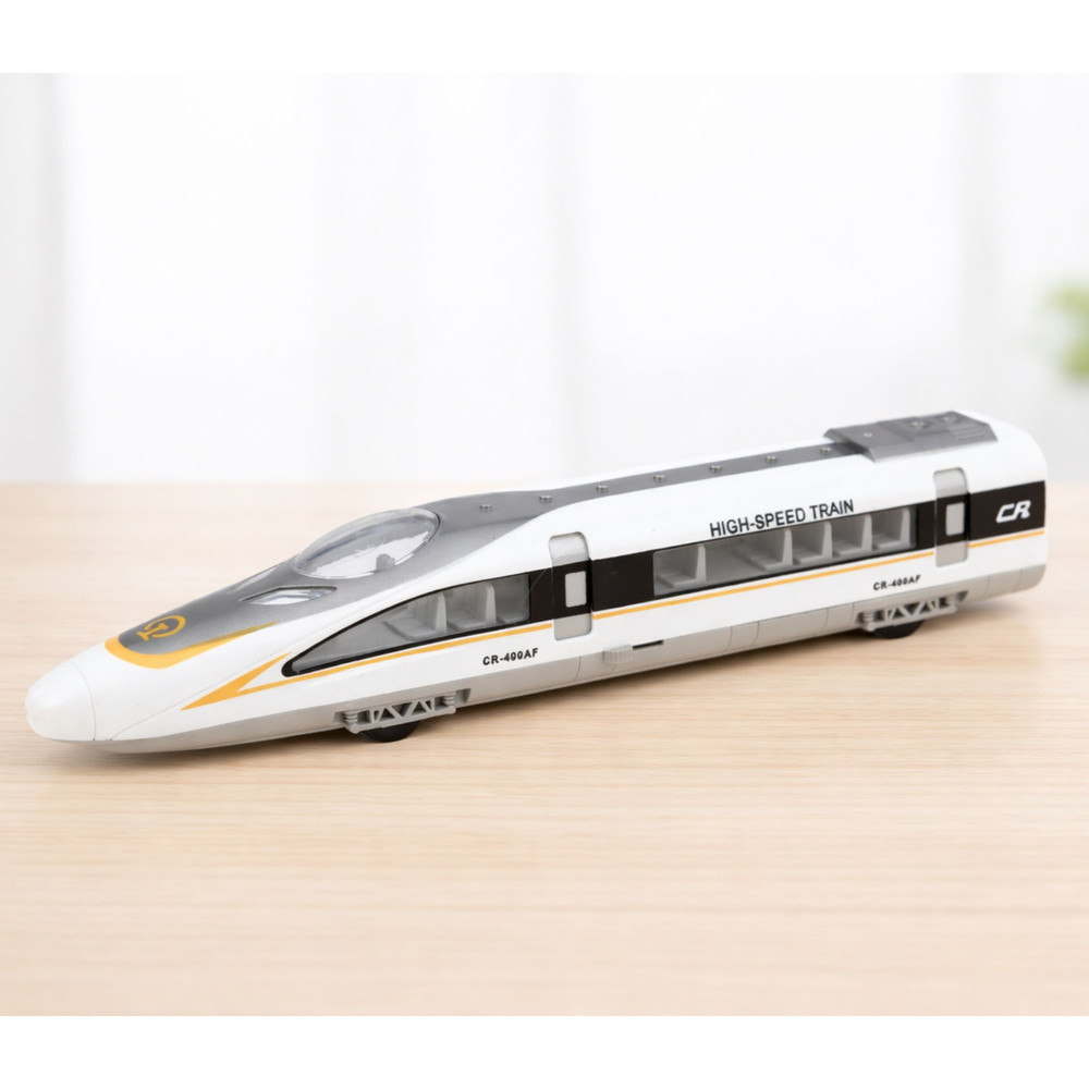 NAGYSEBESSÉGŰ VONAT - FÉNYEK, HANGOK ÉS VEZETÉSA modern nagysebességű vonat egy valósághűen kidolgozott modell, amelyet a nagysebességű, távolsági vonatok ihlettek. Karcsú, aerodinamikus sziluettje és kifinomult részletei dinamikus és modern karaktert kölcsönöznek neki. Az élénk színek finom díszítésekkel hangsúlyozzák a modern nagysebességű vonatokra jellemző megjelenést.A modell fény- és hangeffektusokkal van felszerelve, amelyek fokozzák a játék realizmusát, és lehetővé teszik a gyerekek számára, hogy átéljék a nagysebességű vonatozás hangulatát. Motorral is rendelkezik, így tolásra magától is előre tud haladni. A cipzáras ajtók lehetővé teszik az utasok be- és kiszállásával járó szerepjátékokat, elősegítve a képzeletet és a kreativitást.Nagyobb méreteinek köszönhetően a modell lenyűgözőnek tűnik, és kényelmesen illeszkedik a kézbe. Kiváló választás a vasút, a tömegközlekedés és a modern vasúti járművek iránt érdeklődő gyermekek számára. SPECIFIKÁCIÓK: Vonat méretei: 28 x 5,5 x 4,5 cm Csomag méretei: 34 x 10,5 x 8 cm Tápellátás: 3 db AG13 elem mellékelve Effektek: Fény és hang Meghajtás: Igen Nyitóelemek: Cipzáras ajtók Szín: Fehér és ezüst Anyag: Műanyag A KÉSZLET TARTALMA: Expresszvonat 3 db AG13 elem Eredeti csomagolás