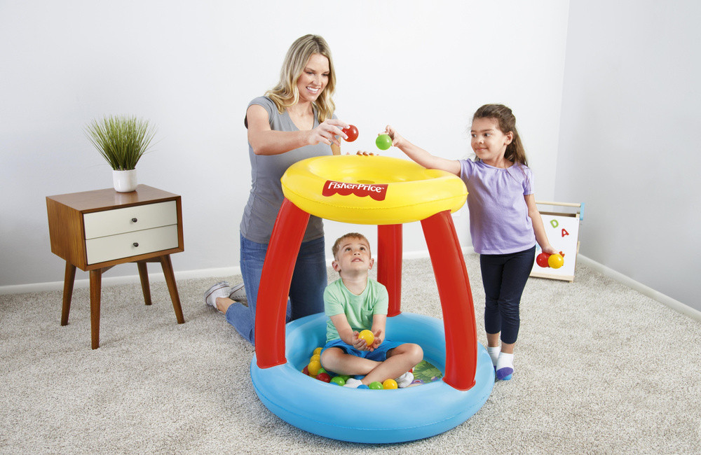 Felfújható pancsoló tetővel 89 cm x 89 cm x 84 cm Bestway 93541 A Fisher-Price Bestway 93541 pancsoló biztonságos és kényelmes játékhelyet kínál a legkisebbek számára. Színes labdákkal felszerelve ideális feltételeket teremt az otthoni tevékenységhez, örömet okozva a gyermeknek és fejlesztve a motoros készségeket. Könnyű kezelhetőségének és kompakt kialakításának köszönhetően könnyen tárolható, tartóssága pedig hosszú távú használatot biztosít. A pancsoló beltéri használatra alkalmas, szórakozást és biztonságot nyújtva játék közben. Főbb jellemzők: - tartós PVC anyag - felfújható padló - labdák mellékelve (15 db) - javítófolt Méretek: 89 cm x 89 cm x 84 cm