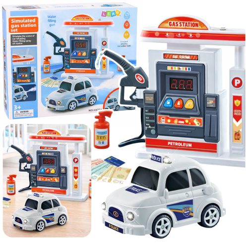 Interaktív benzinkút rendőrautó fényei füstöt hallatnak