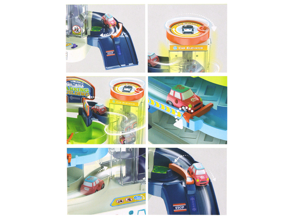 Interaktív, többszintes parkolókészlet autóknak, fényeknek és hangoknak
