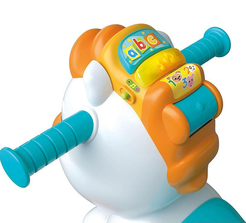 Interaktív póni Marcinek hintaló, járókeret és aktivitásközpont lengyel és angol nyelven Clementoni 50928Egy édes 3 az 1-ben póni: hintaló, járókeret és interaktív aktivitásközpont!A mozgásérzékelőnek köszönhetően Marcinek valósághű hanghatásokkal, vicces mondókákkal és dalokkal reagál a fizikai aktivitásra.A sörényen lévő gombok betűket, állathangokat és neveket tanítanak, míg a forgó görgő számokat mutat be.A játék segít a gyerekeknek az angol nyelv tanulásában is szórakoztató, interaktív módon.Maximális teherbírás: 20 kgAjánlott életkor: 12–36 hónapTermék méretei:54 cm x 46 cm x 19 cmDoboz méretei:54 cm x 46 cm x 18,5 cmElemek szükségesek:IGEN