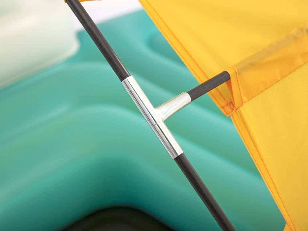 Sziget felfújható matrac 300 x 275 cm Bestway 43407 Az úszó sziget egy olyan matrac, amelyet szeretteivel való pihenésre és kikapcsolódásra terveztek. Akár 5 fő számára is alkalmas, akik kényelmes körülmények között pihenhetnek és pihenhetnek. A matrachoz tartozó rendszer biztosítja a megfelelő rugalmasságot. A napfény ellen védő sárga tető könnyen eltávolítható az árnyékoló eltávolításával, így a matrac tökéletes napozáshoz is. A felfújható háttámlák kényelmesen biztosítják az ülést, az italtartók pedig megkönnyítik a kedvenc italok elérését. A matrachoz fogantyúk és kötelek is tartoznak, amelyek megkönnyítik a matrac szélére szállítását. A matrac belsejében egy kis lábhűtő medence is található. A készlet javítófoltot is tartalmaz. A matrac tartós anyagból, például vinilből készült. Műszaki adatok: - matrac méretei 300 cm x 275 cm - maximális terhelhetőség 450 kg - személyek száma 5 - könnyű szállítást biztosító láncszemek és fogantyúk - 0,45 mm vastagságú PVC anyag - 5 italtartó - kényelmes felfújható háttámlák Súly: 22 kg Csomag mérete: 61 x 45 x 30 cm