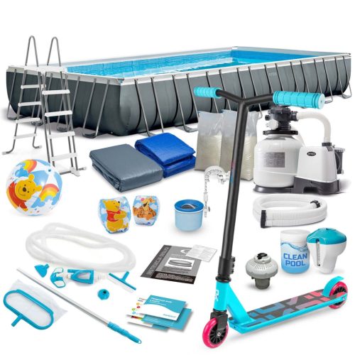 Keretes kerti medence 975 x 488 x 132 cm 21 az 1-ben INTEX 26374 + INGYENES robogó
