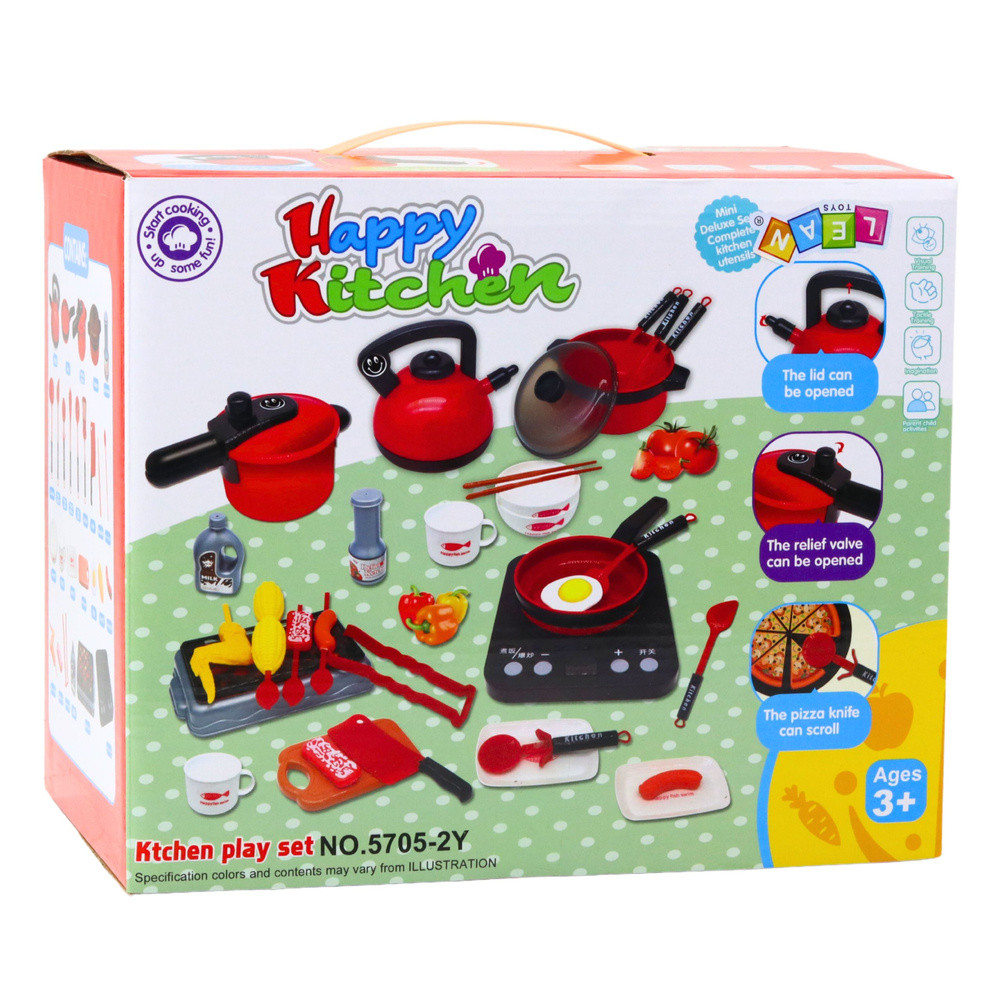 KONYHAI KÉSZLET EDÉNYEK ÉTELKÉSZLETEK 36 ELEM A főzéshez használt konyhai készlet egyedülálló ajánlat azoknak a gyerekeknek, akik imádják a szakács szerepét. A készlet akár 36 elemet is tartalmaz, amelyek valódi edényeket, konyhai eszközöket és ételek hozzávalóit utánozzák. Találunk benne többek között vízforralót, serpenyőt, kuktát, fedős fazekat, grillsütőt, vágódeszkát, sushi evőpálcikával és egy mozgatható főzőlapot sütési és főzési hangokkal. Minden aprólékos odafigyeléssel készült, vonzó, piros és fekete színekben. A játék támogatja a képzelet fejlődését, megtanítja a főzés alapelveit, a felelősségvállalást és a konyhai munka megszervezését. Remek módja annak is, hogy időt töltsünk együtt a szülőkkel vagy a kortársainkkal. A kiegészítők sokfélesége lehetővé teszi kulináris jelenetek létrehozását, és úgy teszünk, mintha valódi ételeket készítenénk - beleértve a sushit, steaket, zöldségeket vagy tojást. A készlet eredeti csomagolásban van - ideális ajándékötlet minden kis szakács számára. SPECIFIKÁCIÓ: Elemek száma: 36 Tápellátás: 3 x AA (nem tartozék, a főzőlapra vonatkozik) Főzőlap: főzési és sütési hang, fénykibocsátó diódák Hőmérséklet a panelen: 200–800 Csomag méretei: 28 x 23,5 x 18 cm Főzőlap méretei: 19,7 x 16,4 x 3,3 cm Vízforraló méretei: 15,5 x 12,5 cm Serpenyő méretei: 21 x 4 cm Kukta méretei: 23 x 12,5 cm Anyag: műanyag Játék típusa: oktató, konyhai KÉSZLET TARTALMA: Főzőlap Vízforraló Fedővel ellátott edény Kukta Serpenyő Vágódeszka Grill ráccsal 2 sushi tál 2 szószos tál 4 sushi pálcika 3 grillpálcika 2 csésze Evőeszközök: húsvágó kés, spatula, merőkanál, spatula, szűrőedény, tésztakanál, pizzavágó Élelmiszerek: tojás, kolbász, steak, csirkeszárny, kukorica Palackok: csokoládétej, ketchup
