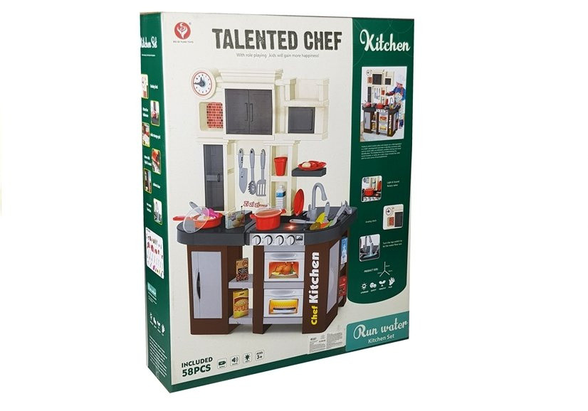 Interaktív Konyha Gyermekeknek Okp Hűtőszekrény Vízcsap Tartozékok 58 db.