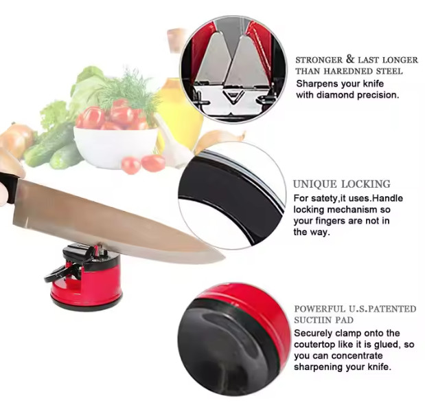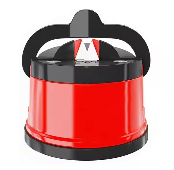 Kés és ollóhegyező szívókoronggal és zárókarral, piros