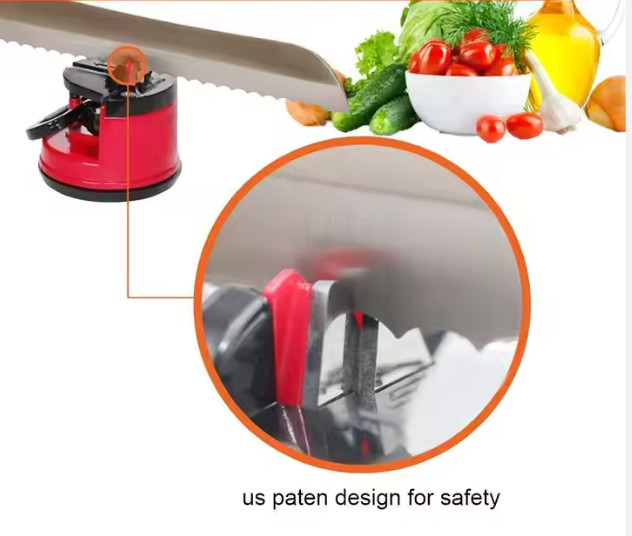 KÉS- ÉS OLLÓÉLEZŐ TAPADÓKORONGGAL A kések és ollók megbízható élezése még soha nem volt ilyen egyszerű és biztonságos. A tapadókorongos élező egy praktikus konyhai eszköz, amellyel néhány másodperc alatt helyreállíthatja a mindennapi eszközök élességét. Az erős tapadókoronggal történő munkalaphoz rögzítési rendszernek köszönhetően az élezés anélkül történik, hogy a készüléket kézben kellene tartani, ami jelentősen növeli a biztonságot. A volfrám-karbid pengékkel felszerelt élező lehetővé teszi a konyhai kések, ollók és egyéb szerszámok gyors és precíz élezését egyenes pengével. Kompakt méretének köszönhetően bármilyen fiókban elfér, kis súlyának és masszív felépítésének köszönhetően pedig kempingezéskor, horgászatkor, kertben vagy sátorozáskor is magával viheti. Az ergonomikus fogantyú lehetővé teszi a készülék egyszerű rögzítését sík felületen. Az élezés megkezdéséhez egyszerűen nyomja meg a tapadókorongot aktiváló kart, majd húzza meg a pengét többször a nyíl által jelzett irányba. Ez egy gyors, biztonságos és hatékony módja annak, hogy szerszámai tökéletes állapotban maradjanak. SPECIFIKÁCIÓ: Típus: tapadókorongos hegyező Alkalmazás: kések, ollók, konyhai eszközök Méretek: 6 x 4,3 cm Rögzítési mechanizmus: tapadókorongos rögzítőkarral Penge anyaga: volfrám-karbid Ház anyaga: ABS műanyag Szín: piros-fekete Rögzítés: szerszám nélkül, sík felületre Mobilitás: kompakt, könnyű, könnyen magával vihető utazáshoz Cél: otthon, telek, kempingezés, szabadban A KÉSZLET TARTALMA: Kés- és ollóhegyező Beépített tapadókorong