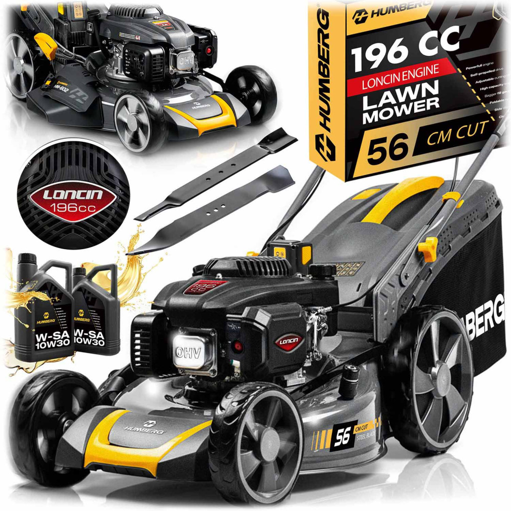 Benzinüzemű fűnyíró önjáró meghajtással 56 cm 70 l LONCIN 196cc + Humberg HM-602 olaj