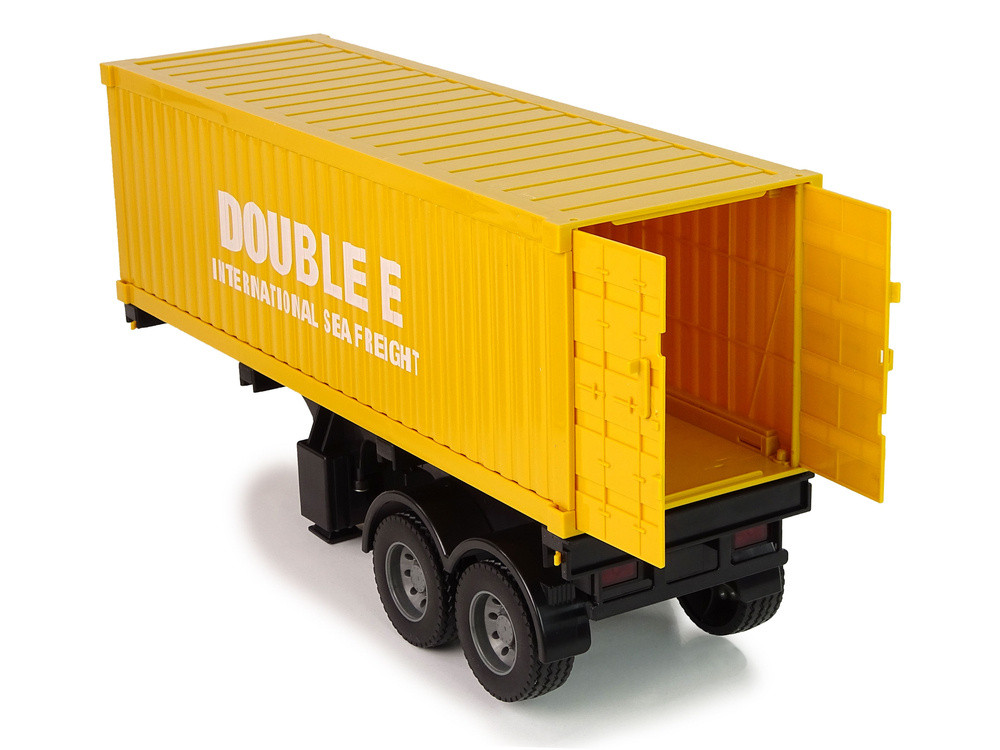 Nagy távirányítású teherautó Mercedes Arocs Kék 1:20 Konténer 58 cm Hosszú A nagy távirányítású teherautó Mercedes Arocs mélyraktáros utánfutóval a legnagyobb részletgazdagsággal készült az eredetihez képest. A teherautó hasonlít valódi, úton közlekedő társára. A kisgyermek játék közben megfigyelheti a megjelenését, tulajdonságait és felépítését. Mostantól otthon is saját miniatűr változata lehet. Az 1:20 méretarányú játék befolyásolja gyermeke képzeletét és kreativitását. A licencelt Mercedes-Benz teherautó készlet ideális különféle tárgyak vagy játékok szállítására. Működés közben valósághű hangokat ad ki. A 2,4 GHz-es távirányító teljes mértékben irányíthatóvá teszi a vontatót és a félpótkocsit. Nélkülözhetetlen bárhol, ahol nehézgépeket és különféle alkatrészeket kell szállítani az építkezésre. A félpótkocsi nyitható, a készlet két kartondobozt tartalmaz az összeszereléshez. Jellemzők: - Méretarány: 1:20 - Távirányító: 2.4G - Játékidő: akár 20 perc - Töltési idő: 80 perc - Távirányító hatótávolsága: kb. 20 m - Sebesség: kb. 3 - 4,6 km/h - nagyon valósághű motorhang a járműben - első és hátsó lámpák - a hang némításának lehetősége - gumiabroncsok - fülkével vagy anélkül is vezethető - a félpótkocsi és a fülke egyszerre vagy külön is működtethető - a fülke előre, hátra és oldalra mozoghat - A félpótkocsi emelkedik és süllyed - Hangszimuláció: gyorsítás, hátramenet, figyelmeztetés, kürt, vontatás működtetése;   A készlet tartalma: - Mercedes-Benz teherautó - távirányító - 4,8 V-os 300 mAh-s akkumulátor - akkumulátortöltő - használati utasítás   Fülke/traktor méretei: 32 cm x 14 cm x 19 cm A konténer/pótkocsi méretei: 41 cm x 13 cm x 23 cm Teljes méretek: 58 cm x 13 cm x 23 cm   Doboz méretei: 74 cm x 28 cm x 18,5 cm A teherautót egy 4,8 V-os újratölthető akkumulátor (tartozék), míg a távirányítóhoz két AA 1,5-ös elem szükséges (nem tartozék). A jármű 6 év feletti gyermekek számára alkalmas. A készlet átlátszó ablakkal ellátott kartondobozban található, így ajándéknak is ideális.