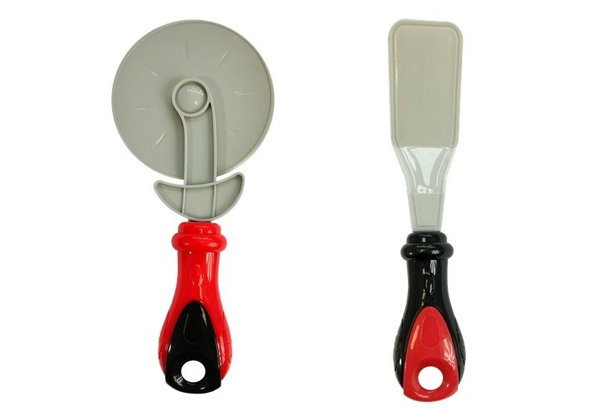 Little Chef Pizza és Fagylalt Készlet 20 darabos A gyerekek imádják a pizzát, és gyakran a legnagyobb titkuk az, hogy hogyan van olyan egyenletesen szeletelve. A játék pizza készlettel tökéletesen szeletelt pizzát tálalhatnak majd fagylalttal desszertként! A Cooking Fun játékkészlet érdekes megoldást kínál az ételek szeletelésére. A cég készleteiben az ételdarabok tépőzárral vannak összekötve, ami lehetővé teszi, hogy szorosan egymáshoz legyenek rögzítve, így a mellékelt késekkel is fel lehet vágni őket. Ennek a megoldásnak köszönhetően a forgó pizzavágó segítségével gyermeke tökéletesen egyenletes darabokra tudja vágni játék pizzáját. A pizza és fagylalt tálalására szolgáló készlet a következőket tartalmazza: - 16 cm átmérőjű pizza, 6 darabra vágva, - Pizzatálcák, - Forgó pizzavágó, - Spatulák a pizzaszeletek felviteléhez, - Evőeszközkészlet a pizza elfogyasztásához, - Két tányér, - Két fagylalt, - 3 szószos készlet. A csomag mérete: 53 cm x 28 cm x 5 cm. A készlet egy kartondobozban kapható, egy nagy műanyag ablakkal, amely színes tartalmat tár fel, ami mindenképpen szemet gyönyörködtető.